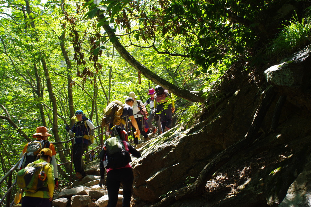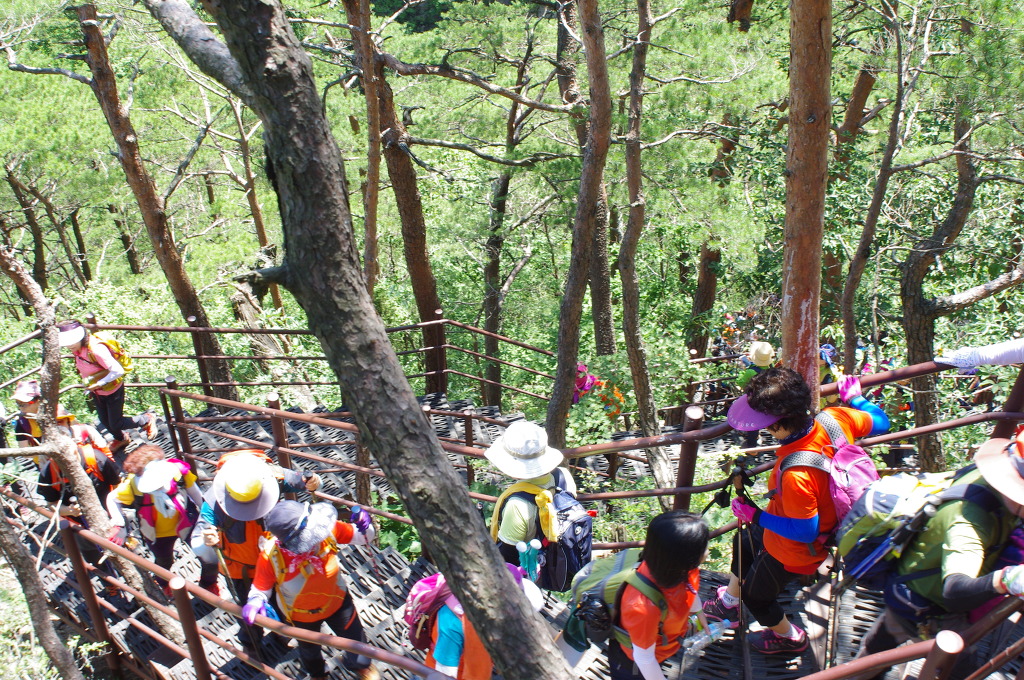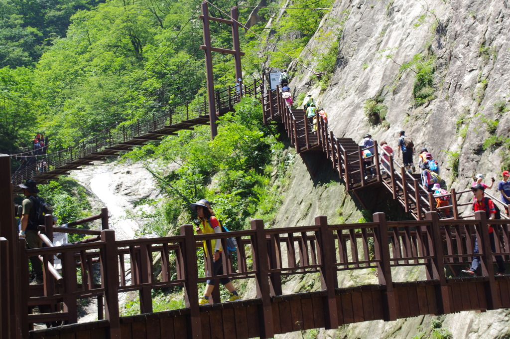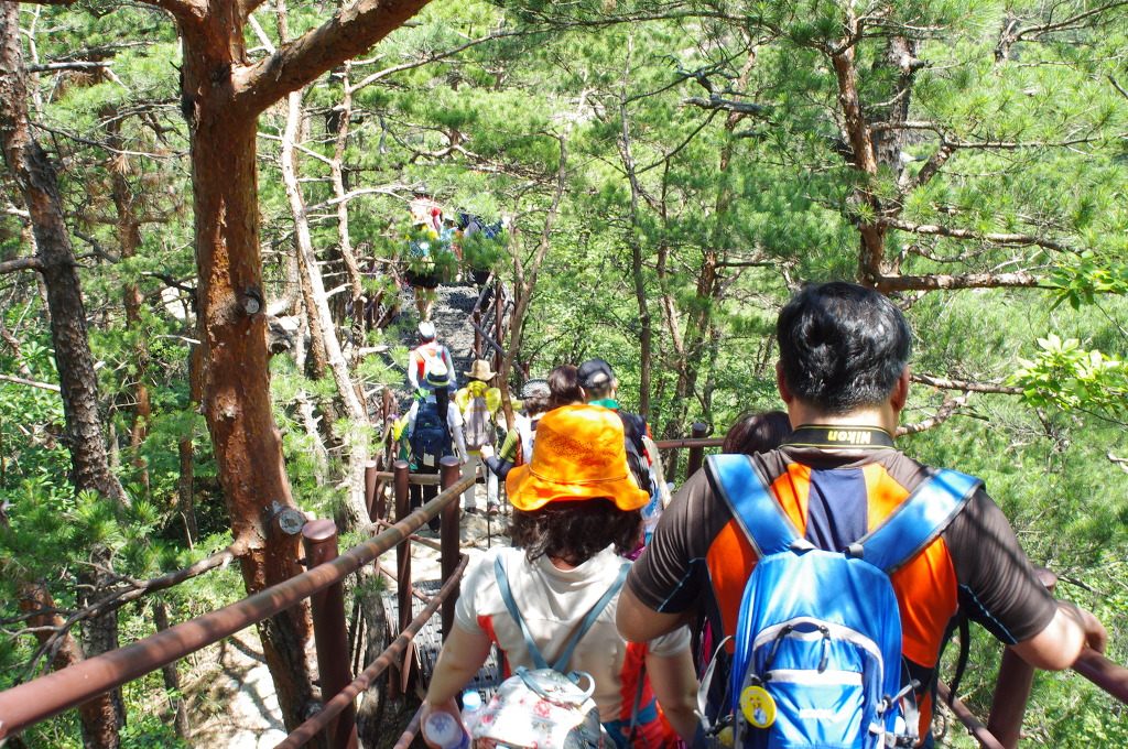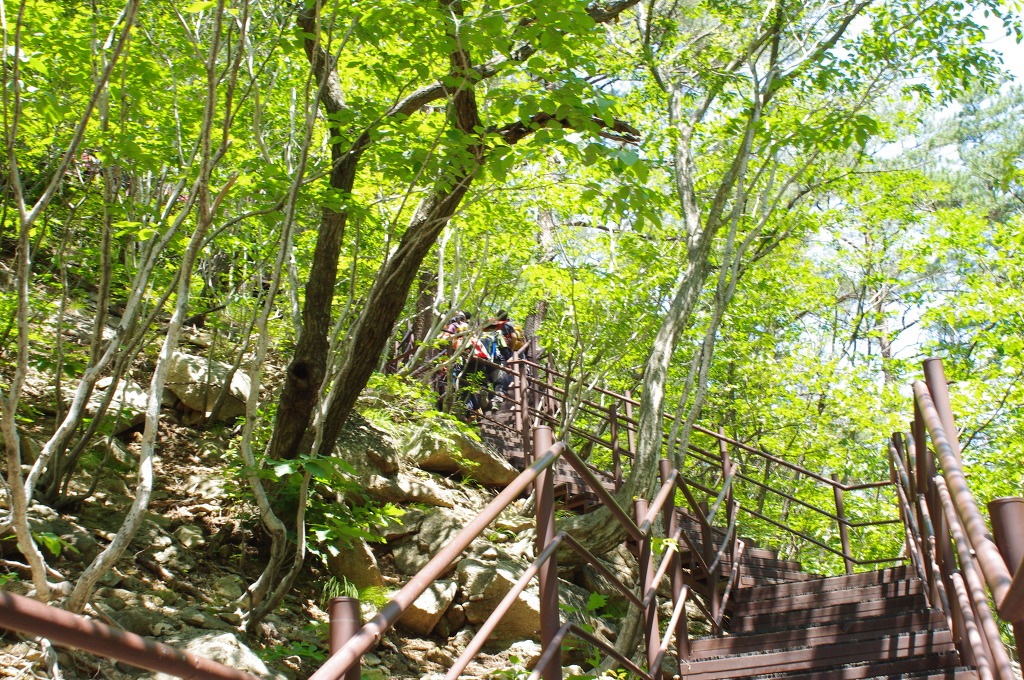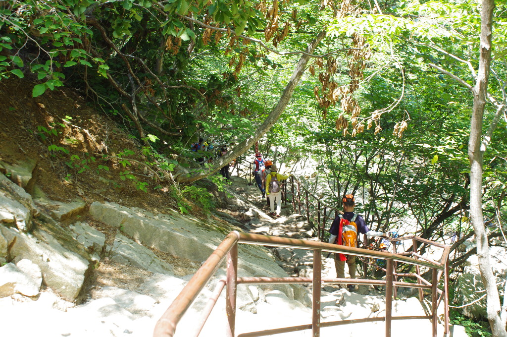 비룡폭포에서부터 410m가 990계단의 어려운 오름길이 시작된다