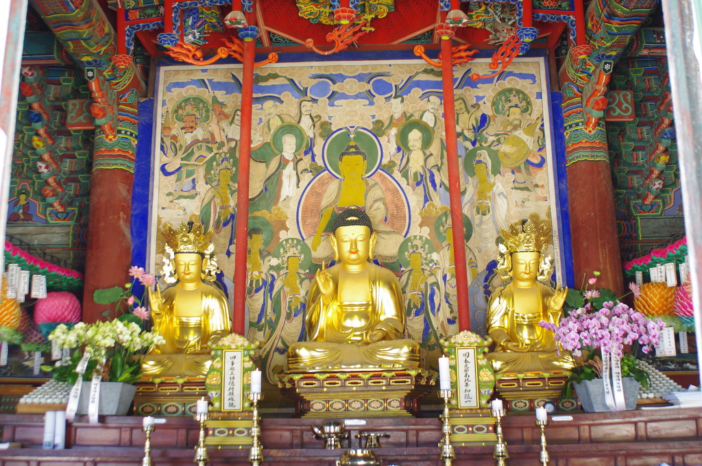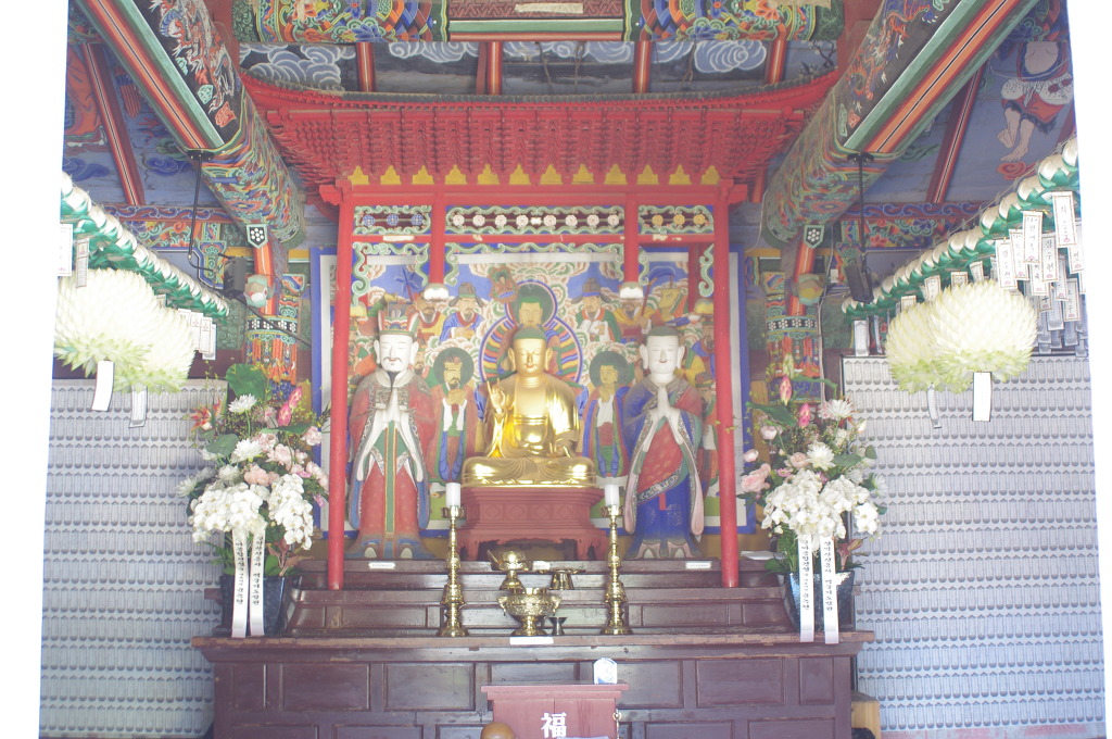 극락보전에 중앙에 아미타불상중심으로 향좌에 관음 보살상과 향우에 대세지보살상이 봉안되어 있다