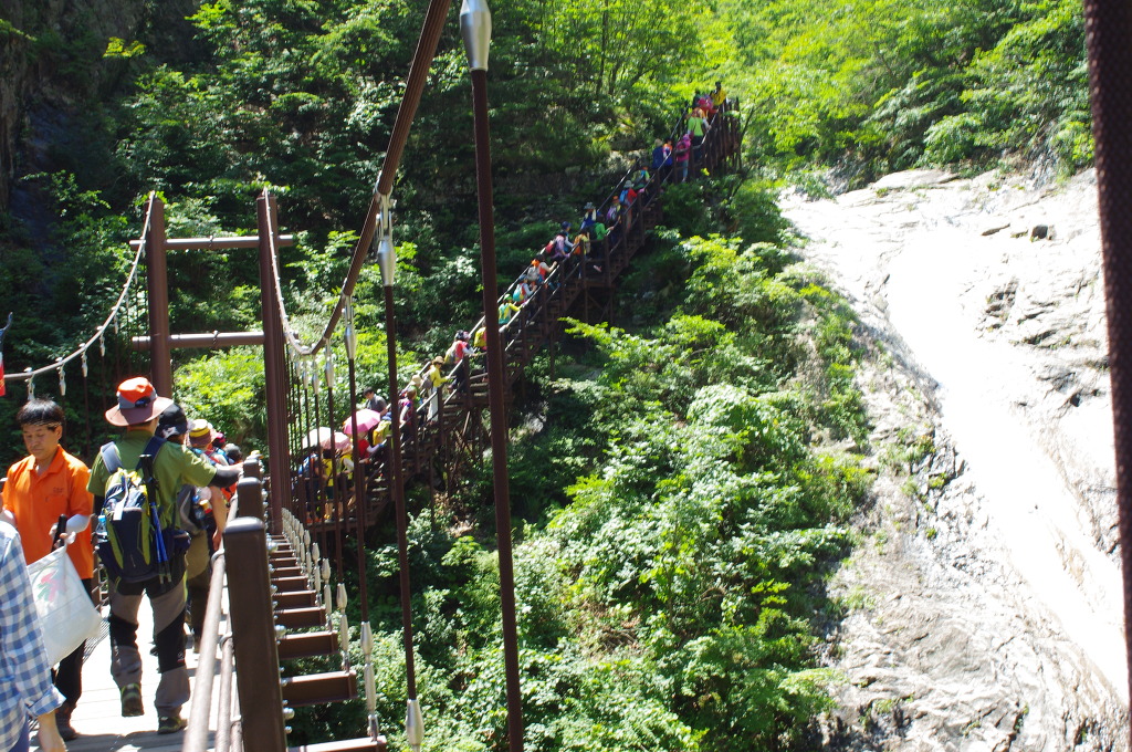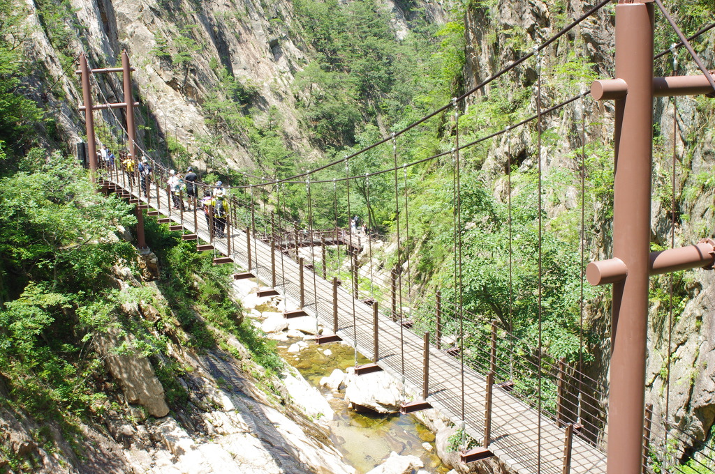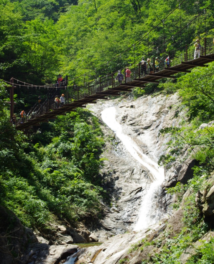 폭포소리를 들으며 조금을 걸으니 눈앞의 현수교가 나선다