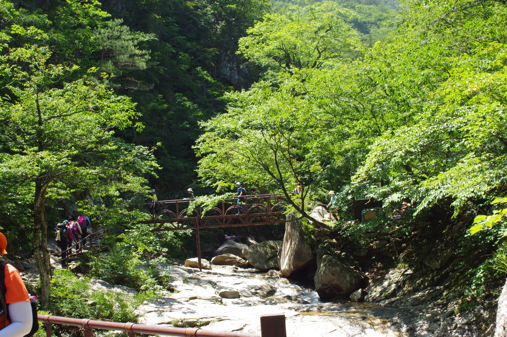 작은 계곡의 다리를 시원한 물소리를 들으며 건너고