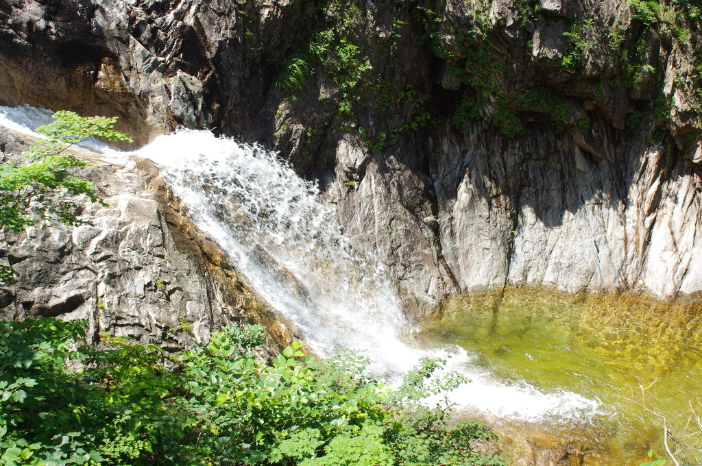 물줄기는 화채봉에서 흘러 칠성봉을 끼고 돌아 상단 150m 중단 80m 하단 90m등