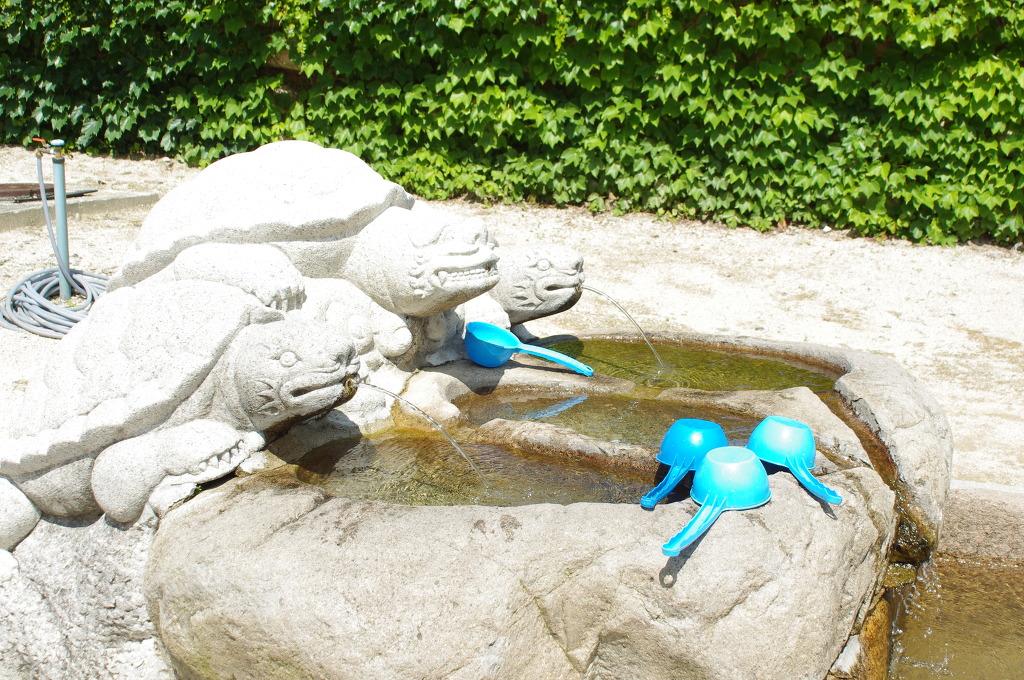 더위에 시원한 샘물 로 목을 축이고 발길을 재촉한다
