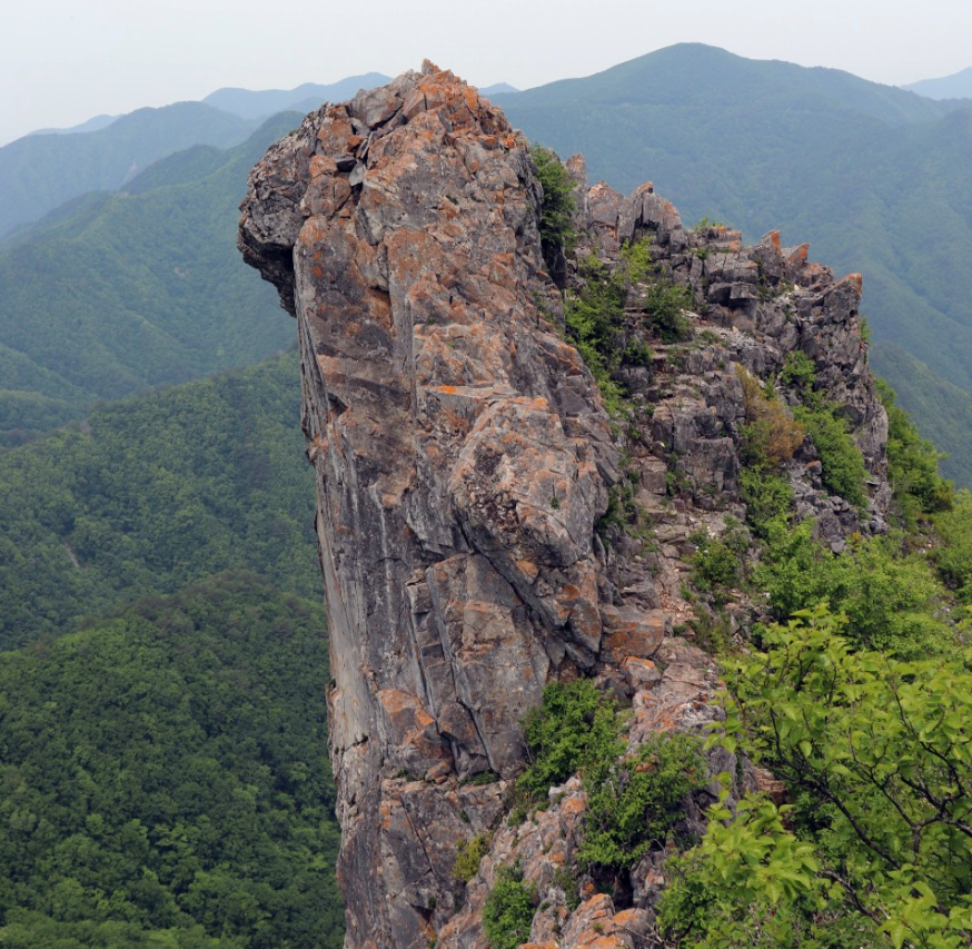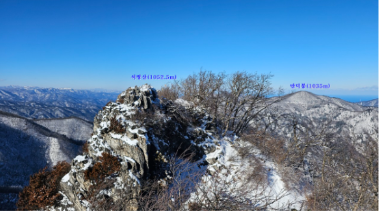 ※ 석병산 정상에서 10m 아랫쪽에 일월문이있으며 일월문에서 조금더 아래로내려가면 일월봉에 오를수있습니다