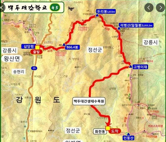 ▲ 산행코스 : 삽당령정상~두리봉~석병산(원점회귀)
