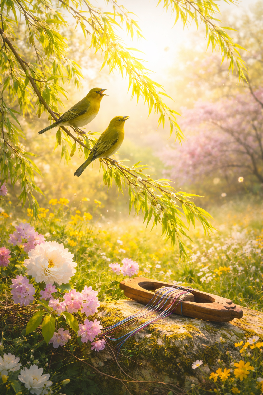 마치 봄의 비단을 짜는 장인처럼 그려집니다.
