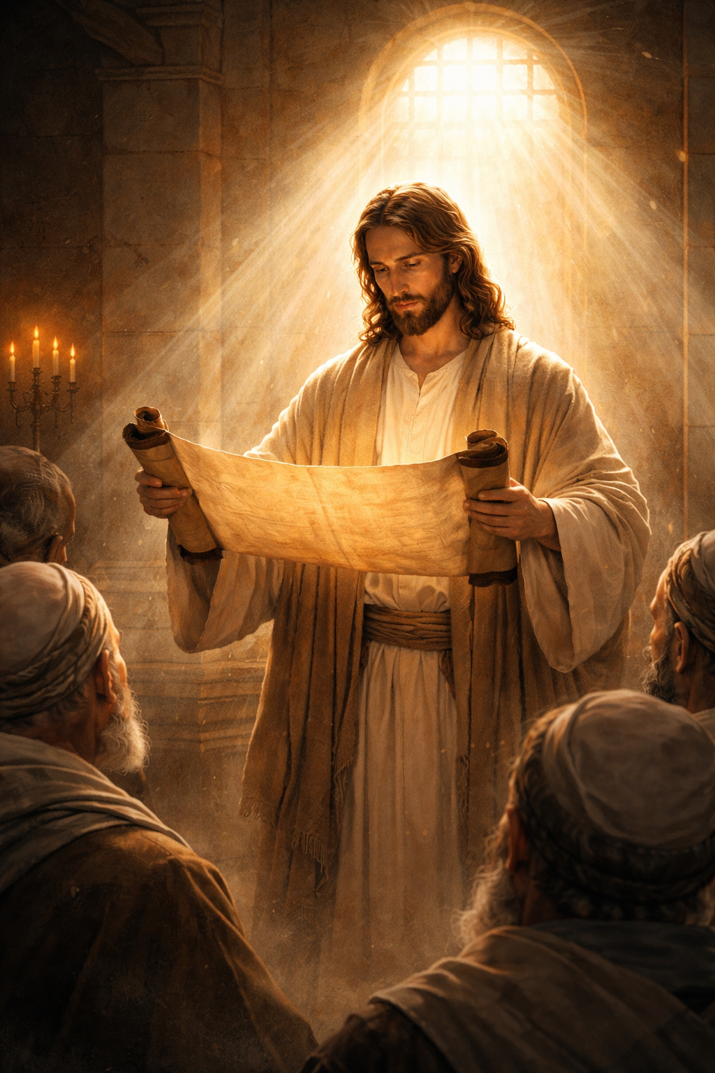 곧 가난한 이들에게 기쁜 소식을 전하고, 묶인 이들을 자유롭게 하며, 상처 입은 이들을 회복시키는 구원의 길을 선포하시는 장면이지요.