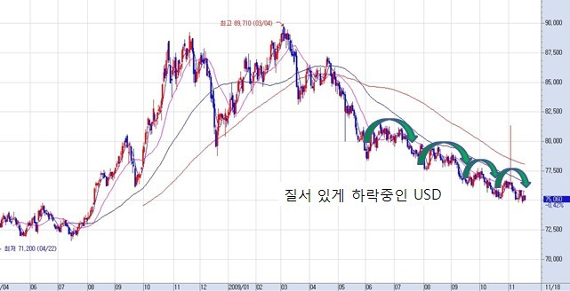 아마도 금융위기이전의 달러인덱스 72선까지는 내년초에 도달할 것으로 봅니다.