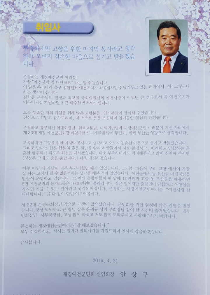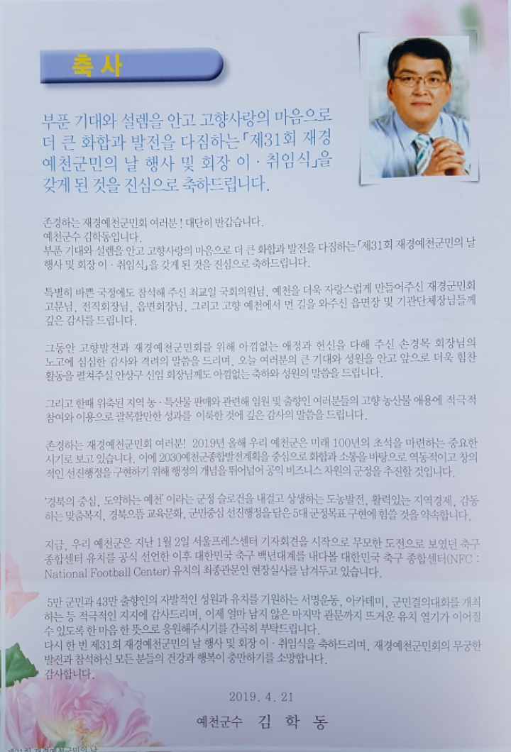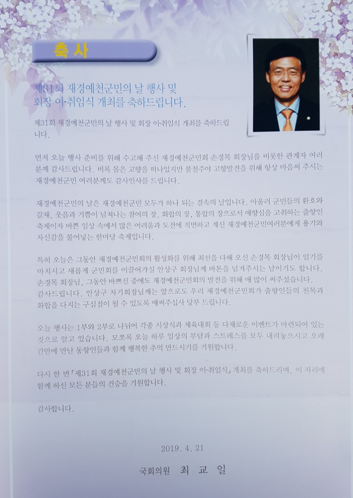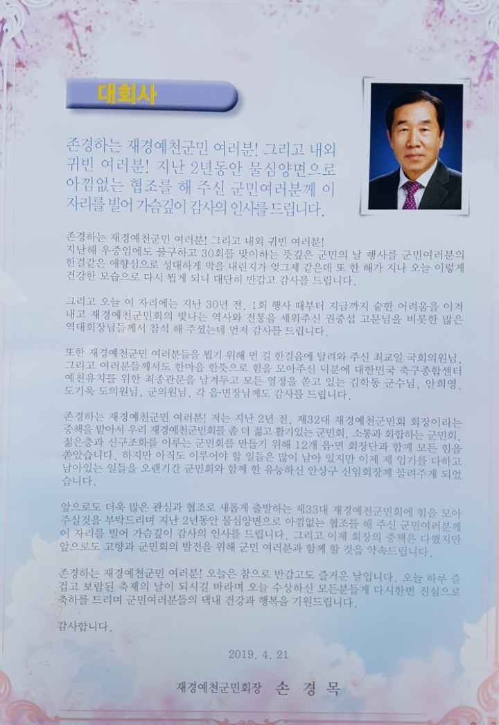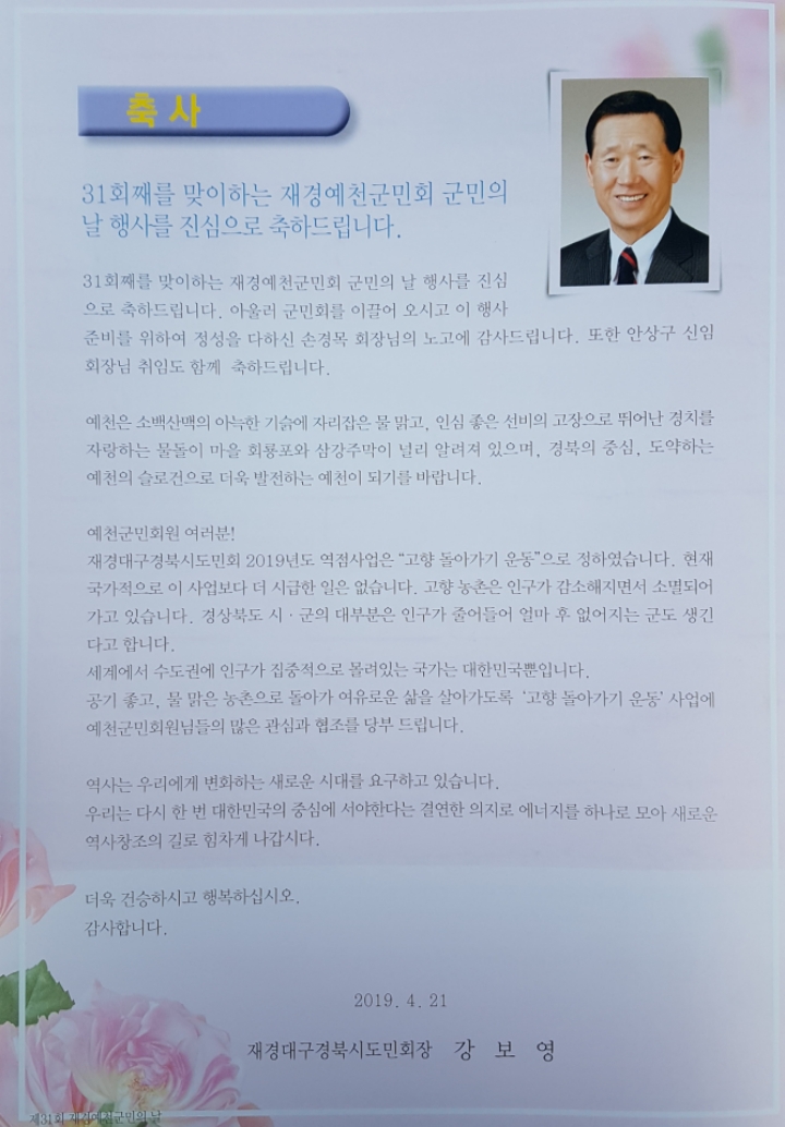 [스크랩] ■ 2019 예천사람 한마당 큰잔치 /국회 운동장 [ 1 ] 작성자박찬록 (혜우)|작성시간19.04.26|조회수17 목록 댓글 0 글자크기 작게가 글자크기 크게가 제31회 재경군민의 날 행사 이모저모 입니다많은 즐감바랍니다 ~~~ 다음검색 스크랩 원문 : 재경예천군민회 현재 게시글 추가 기능 열기 북마크 공유하기 신고 센터로 신고 댓글 댓글 0 댓글쓰기 답글쓰기 댓글 리스트