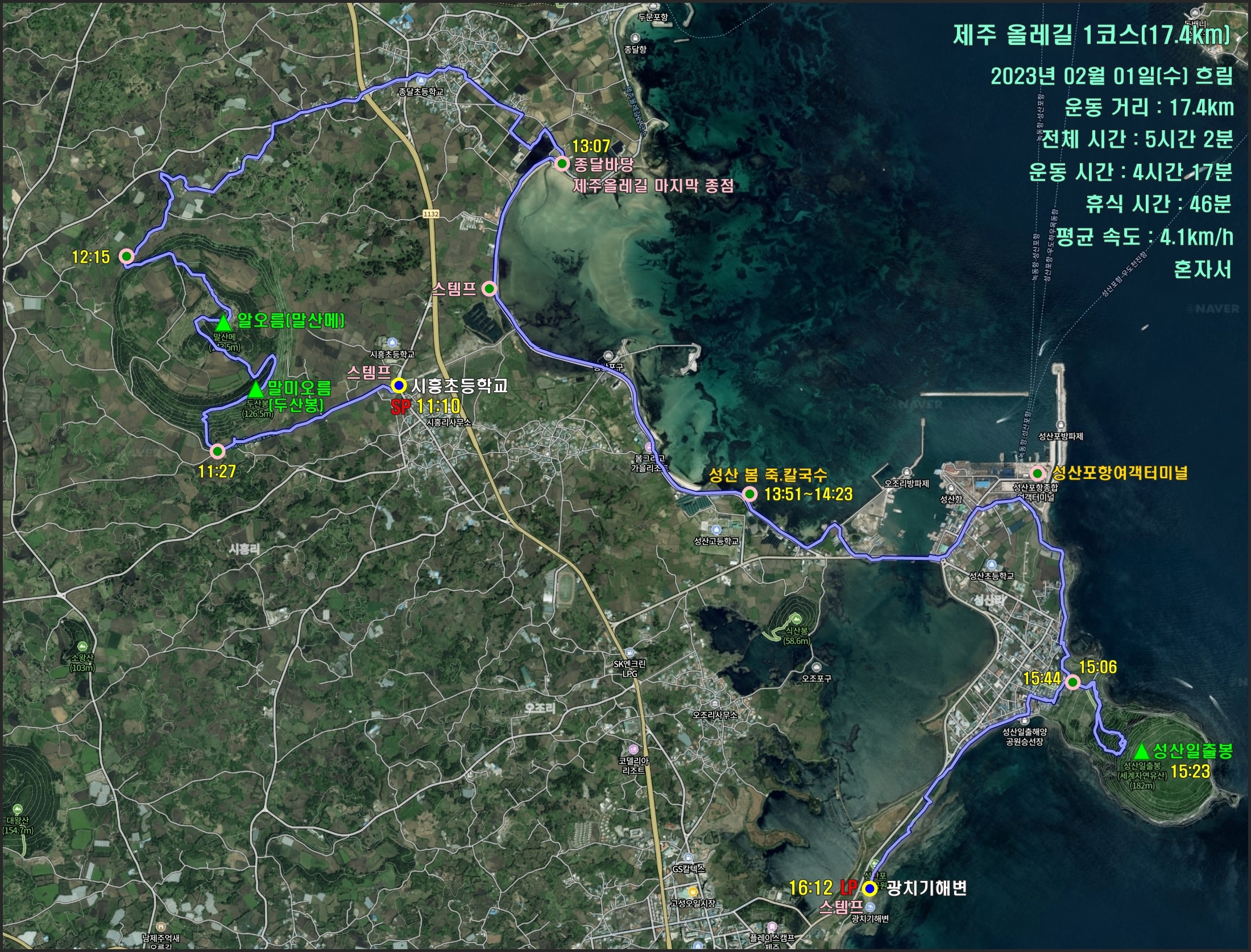 ▼16:12.... 제주 올레길 1코스 종점이다.