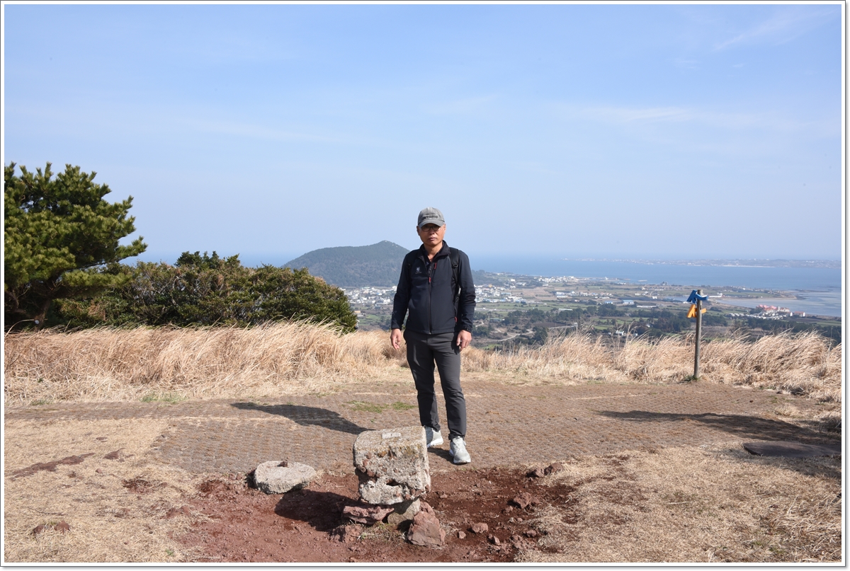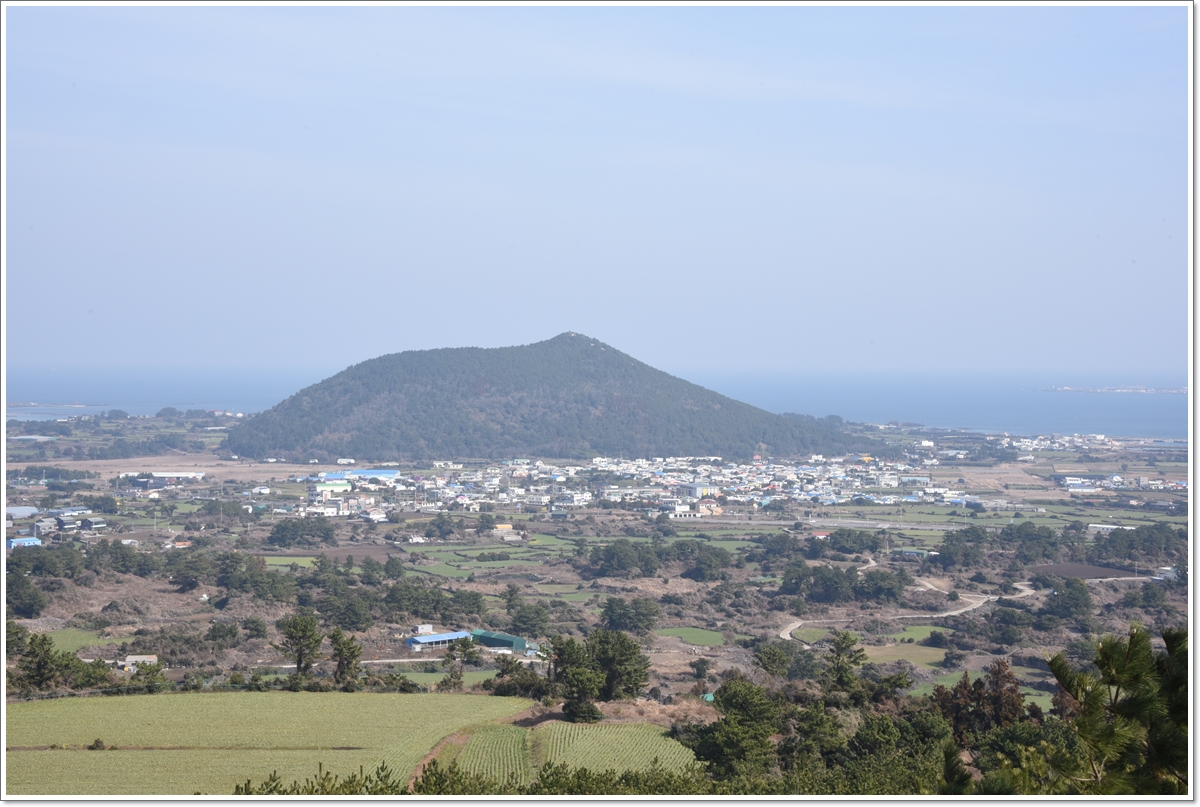 ▼알오름 정상에서 담은 지미봉이다... 지미봉 앞 마을이 종달리다.