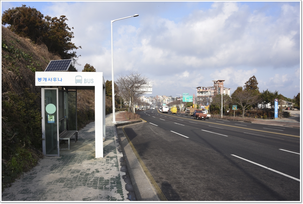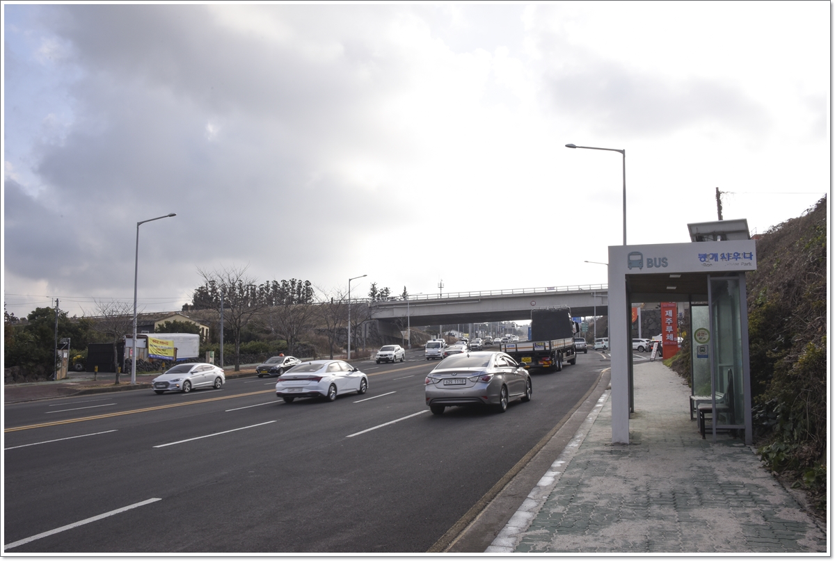 ▼09:30... 숙소에 짐을 두고 버스를 기다리며... 제주시 방향이다.