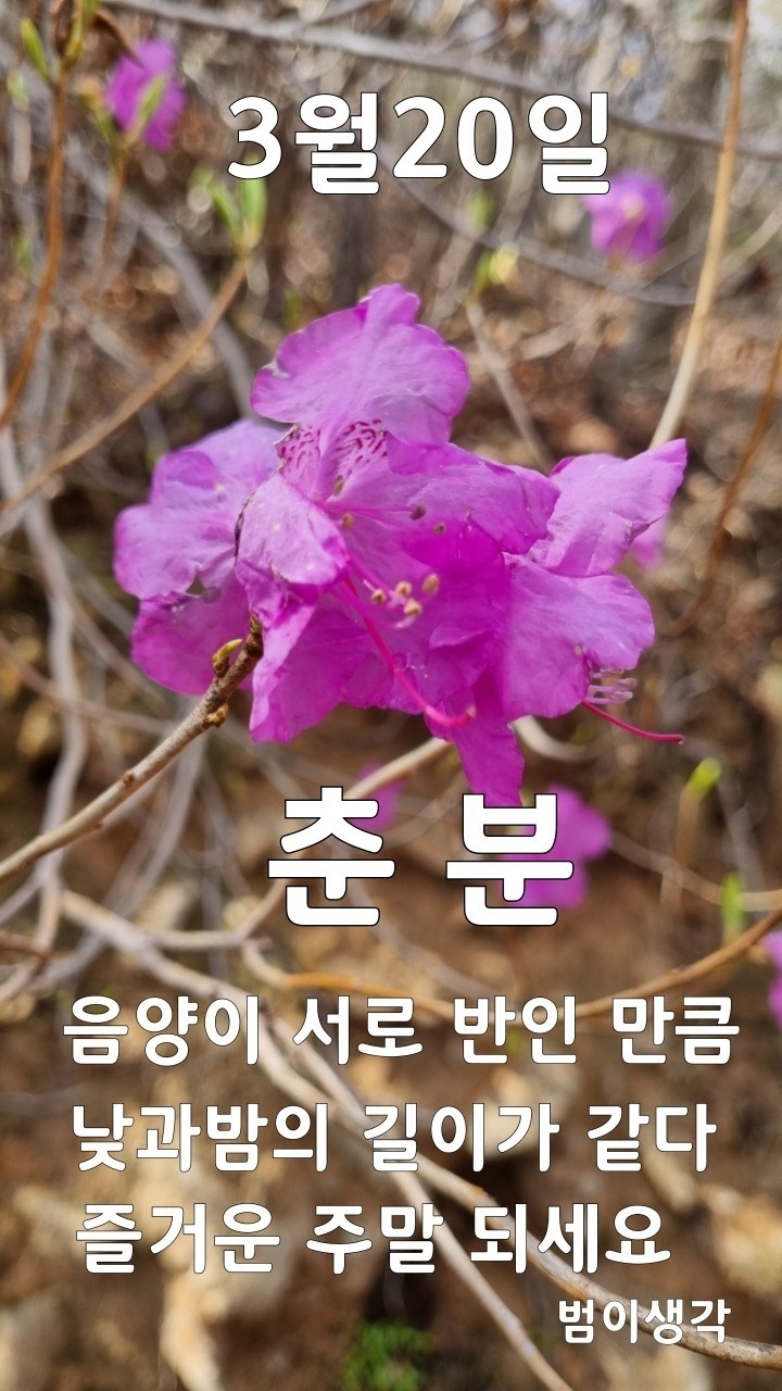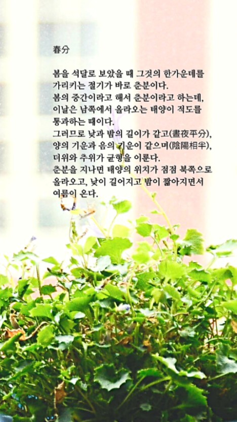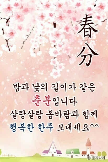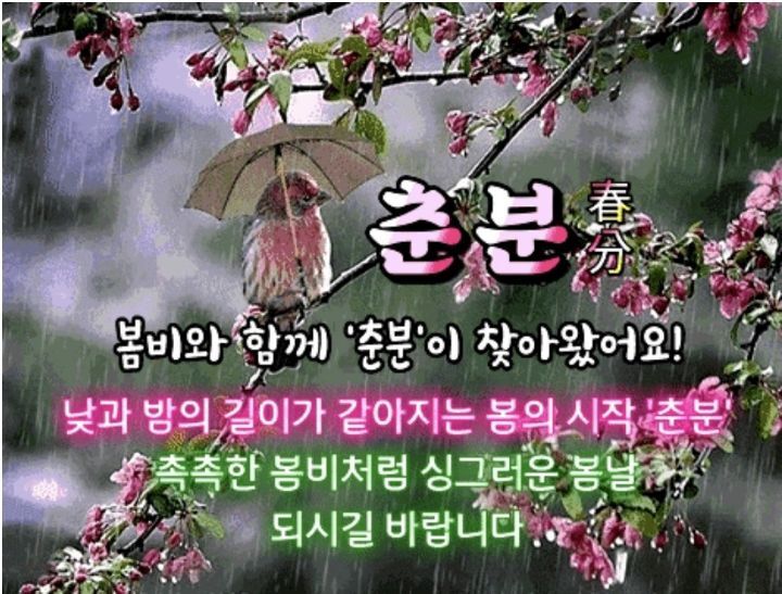 오늘은 낮과 밤이 같다는 춘분 입니다ㅡ봄비와 함께 '춘분(春分)'이 찾아왔어요ㅡ낮과 밤의 길이가 같아지고ㅡ 더위와 추위가 같아지는 춘