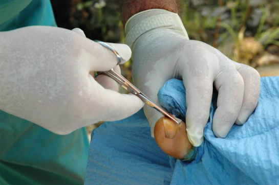 탈지면을 주먹만큼 뭉쳐 바닥을