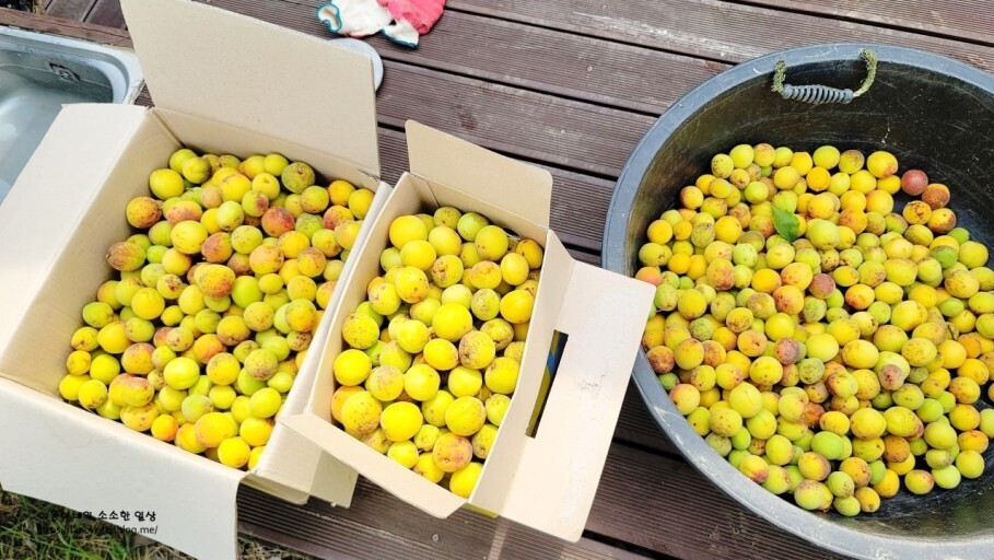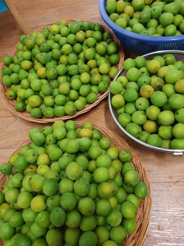 1. 매실 5kg의 꼭지를 제거합니다.