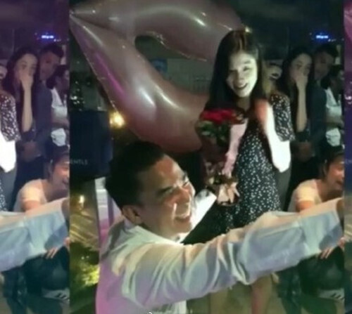 비를 맞으며 춤을 추며 기뻐했습니다.