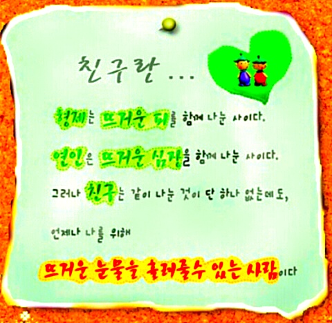 친구란? 환경이 좋던 나쁘던 늘 함께 있었으면 하는 사람이다.