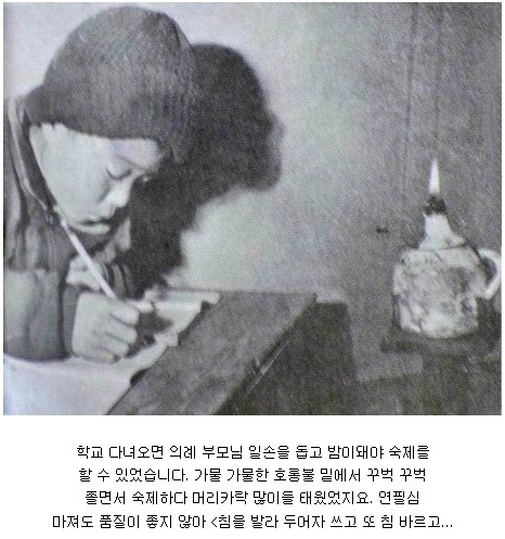 작성자임경운작성시간20.03.02조회수3,125,847 목록 댓글 7우리는 자랑스런 대한민국 꼰대이다ㆍ 지금의 60~70~80대 세대들이 살아온 길 1. 우리는 <호롱불> 세대였다. 우리는 자랑스런 대한민국 꼰대이다 90%는 '전깃불'이 없고 '호롱불'을 켜놓고 공부했다. 2. 우리는 <뒷간> 세대였다. 90%는 '실내 화장실'이 없고, 엄동설한 한겨울에도 '뒤 구석' '재래식변소'에서 '볼 일' 을 봤다. 3. 우리는 <우물> 세대였다. '상수도'가 없어, 동네 '공동우물'에 양동이로 물 길어 '항아리'에 담아 놓고 마셔야 했다. 4. 우리는 <가마솥> 세대였다. 98%는 '목욕탕'이 없어 '가마솥'에 물을 끓여 '목욕'을 했다. 5. 우리는 <손빨래> 세대였다. 100%가 "세탁기"가 없어, 개울에나가 추운 겨울에도 '얼음장'을 깨고 '빨래'를 했다. 6. 우리는 <보행/자전거> 세대였다. 95%는 "자가용"이 없어 대부분은 걷거나 일부는 '자전거'를 타고 다녔다. 7. 우리는 <고무신> 세대였다. 95%는 '구두'도 '운동화' 도 없어 '검정고무신'을 신고 다녔다. 8. 우리는 <까까중> 세대였다. 100%가 '이발비'가 적게 드는 '까까중 머리'로 다녔다. 9. 우리는 <보자기> 세대였다. 98%는'책가방'이 없어 "보자기"에 '책'을 싸서 '허리'에 차고 다녔다. 10. 우리는 <고무줄> 세대였다. 100%가'장난감' 이나 '놀이기구'가 없어 여자애는 '고무줄' 넘기하고, 머스마는 '새총'을 만들었다. 11. 우리는 <강냉이> 세대였다. 100%가 '쌀'이나 '보리쌀'이 없어 '강냉이 빵' 이나'꿀꿀이 죽'을 만들어 '끼니'를 때워야만 했다. 12. 우리는 <주경야독> 세대였다. 98%가 낮에는 '가사일, 농사일 돕기' 풀베기, 나무하기, 소먹이기, 동생돌보기 등을 하고서 밤이 되어야 '학교숙제'를 했다. 13. 우리는 <주판> 세대였다. 100%가 전자계산기나 '컴퓨터'는 없고 다섯 알 짜리 '주판'을 굴리면서 '셈'을 했다. 급수를 따야 은행 등 좋은 직장에 취직했다. 14. 우리는 <일제고사> 세대였다. 100%가 입학 / 졸업은 물론이고, 국민학교 1학년 때부터 전교생이 일제히 '시험' 을 치르고 '등수'를 매겨 '경쟁'했다. 15. 우리는 <입학시험> 세대였다. 100%가 중학교, 고등학교, 대학교를 "본고사 입학시험"을 치러'상급학교'에 '진학'을 했다. 16. 우리는 <공돌이 공순이> 세대였다. 하도 '가난'하여 '진학'하지 못하면'식모살이' 아니면 구로공단 같은 공장에서 '공돌이' '공순이' '버스차장'을 하면서 땀 흘려 일을 하고 야간에는 교복입고 야간학교에 등교했다. 17. 우리는 <삯 월세> 세대였다. 80%가 "신혼 살림집"을 구할 '돈'이 없어 거의 모두가"사글세 단칸방"부터 시작하여 '전세'로 옮겨 다녀야만 했다. 18. 우리는 <월남전> 세대였다. 나라가 '빈곤' 하여 '목숨'걸고 전쟁터에서 돈을 벌어 와야만 했다. 19. 우리는 <광부. 간호사> 세대였다.