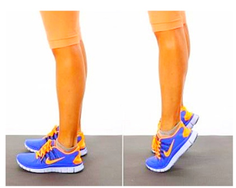 10. 까치발 동작 이 모든 것이 다 힘들다 하시면 그냥 똑바로 서서 뒷꿈치를 들어 올리는 까치발 동작을 반복해보세요. 이 정도야 할 수 있잖아요. 까치발로 서기 위해서는 종아리 근육을 써야 합니다.