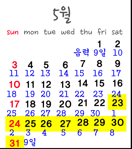 작성자임 경운작성시간20.05.02조회수4,963 목록 댓글 0윤달(閏달) 또는 윤월(閏月)은 또는 계절년치윤법(置閏法)이라고 한다. 한국에서는 윤달이 있는 해의 동지는 대개 애동지이다. 과거에는 윤달을 특정한 위치에만 두었으나, 현재의 치윤법에 따르면, 윤달은 중기(中氣 : 절기(節氣 : 예를 들어 소만, 음력 5월에는 중기인 하지가 들어 있지만, 윤4월에는 중기가 없고 절기인 망종 만 들어 있다. 이런 시기에 맞추어 윤달을 집어넣는 것이다. 한편 현재 치윤법에 따르면, 여름에는 절기 간 긴격이 넓고 겨울에는 절기 간 간격이 좁기 때문에 윤달은 겨울에 들어오지 않는다. 이런 시기에 맞추어 윤달을 집어넣는 것이다. 2020년 5월 22일): 윤4월 (양력 2020년 5월 23일 ~ 5월 (양력 2020년 6월 21일 ~ 2020년 7월 20일): 윤달에는 월건(月建)이 배정되지 않는다 윤달에 따른 풍속 민속에서 윤달은 덤으로 생긴 달이므로 재액이 없다 하여 혼례식·건축·수의 만들기 등을 아무 거리낌 없이 행한다. 또 윤달에 출생하거나 사망하면 생일 잔치나 제사를 원래의 달과 윤달에 시행하므로 결국 두 번씩 치르는 셈이다. 예로부터 윤달은 '썩은 달'이라고 하여, "하늘과 땅의 신(神)이 사람들에 대한 감시를 쉬는 기간으로 그때는 불경스러운 행동도 신의 벌을 피할 수 있다"고 널리 알려졌다. 이 때문에 윤달에는 이장(移葬)을 하거나 수의(壽衣)를 하는 풍습이 전해 내려왔다 위의 달력을 보면 5월 30일이 음력 8일 초팔일 이고 5월 1일이 음력 4월 9일이고 5월 31일이 음력 9일이다 그래서 음력 4월 9일이 생일인 사람은 5월달에 생일을 한번 더 먹을수있고 부처님 오신날도 다시온다 이말입니다 하화도 꽃섬 여행ㅡ 하화도 출렁다리 ㅡ 우리는이렇게살아왔는데ㅡ cafeapp 누나가딱이야ㅡ cafeapp 왜이래ㅡ cafeapp 내용이 넘 좋아요~ 코로나도 못막는다… 용두산엘레지ㅡ =cafeapp 하루의걸음수와ㅡ =cafeapp |