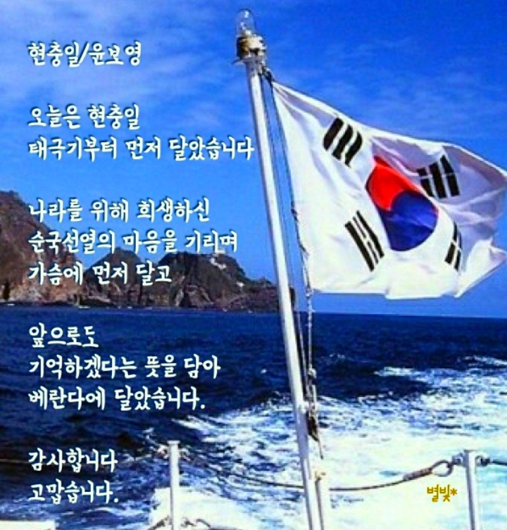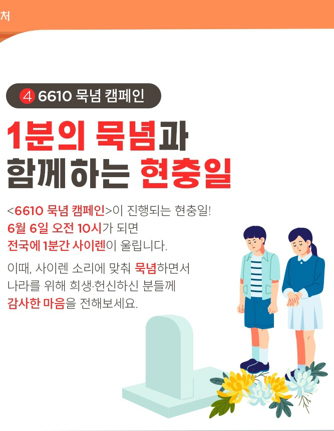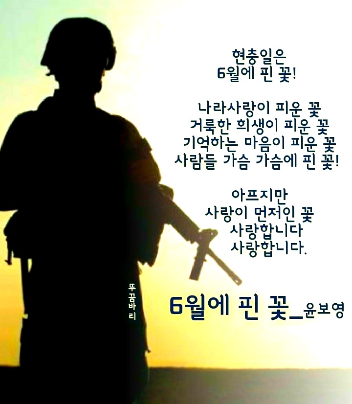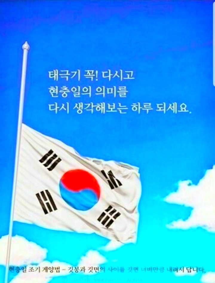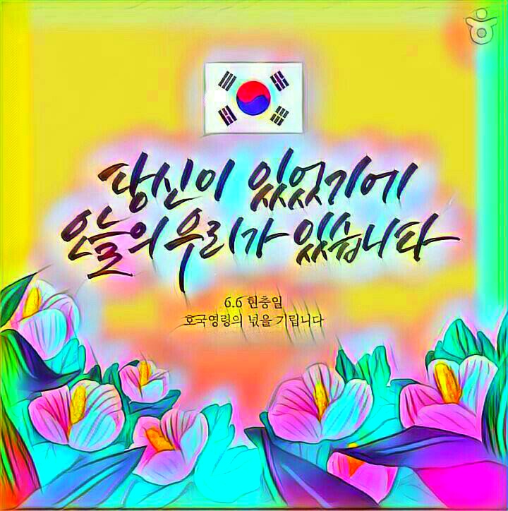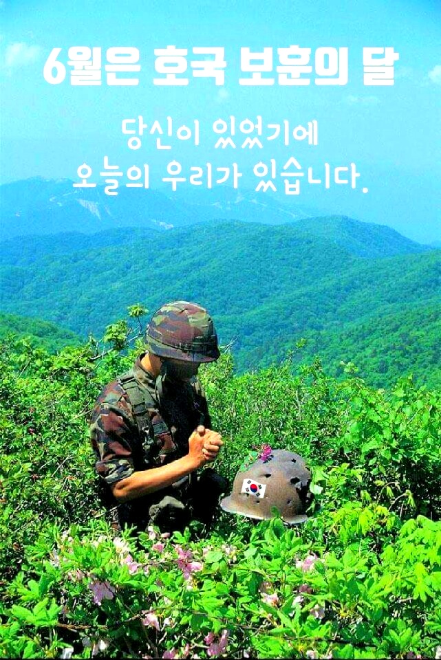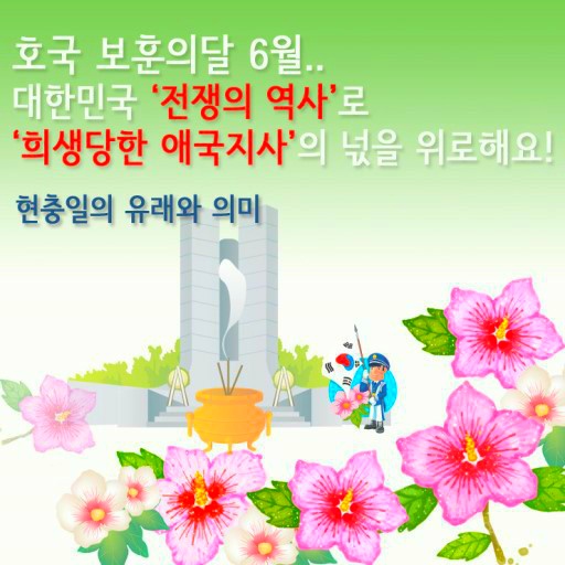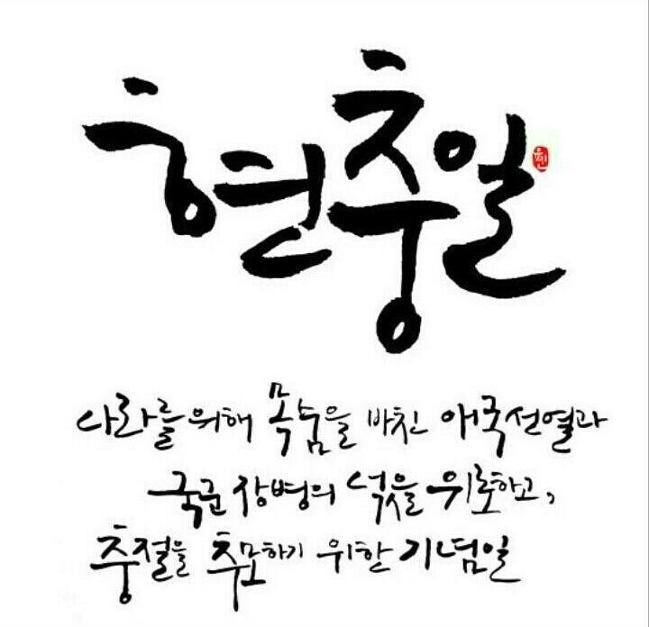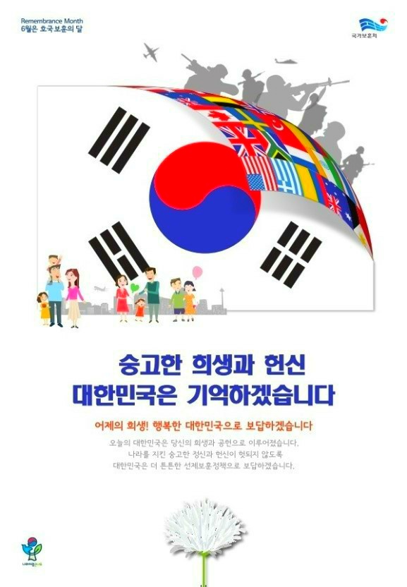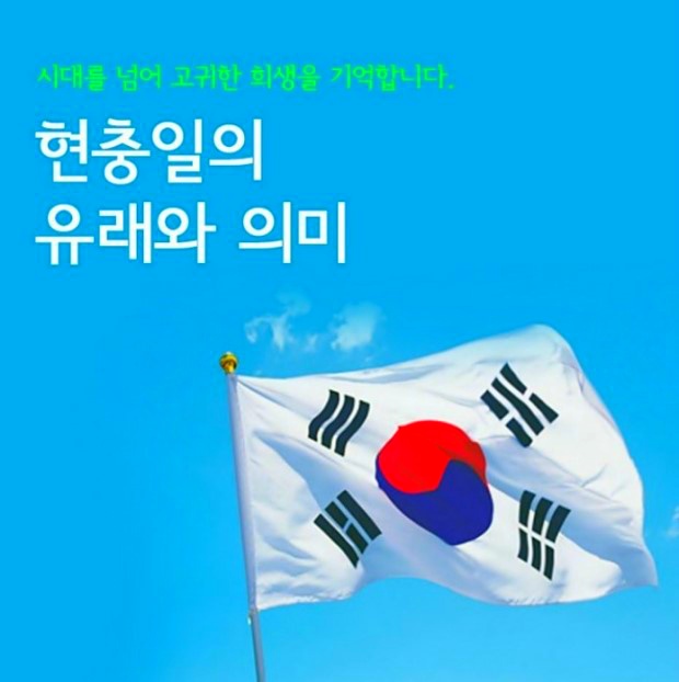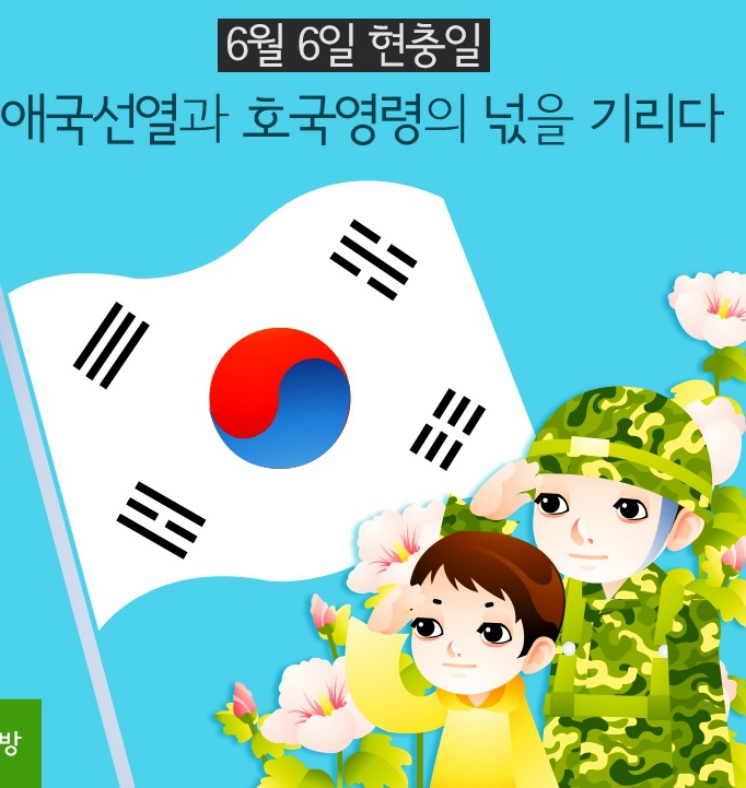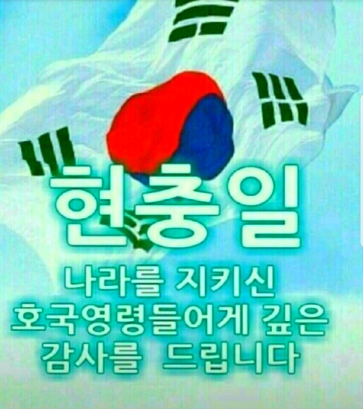 현충일 顯忠日ㅡ매년 6월 6일 ㅡ호국영령의 명복을 빌고 ㅡ순국선열과 전몰장병의 숭고한 ㅡ호국 정신과 위훈을ㅡ 추모하는 기념일