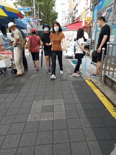 나란히 걷는 듯하고 바깥쪽에서
