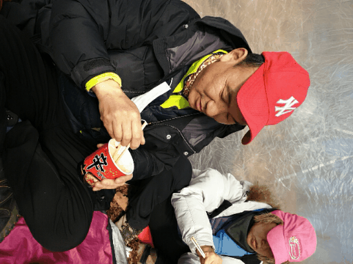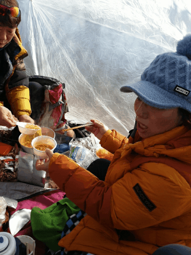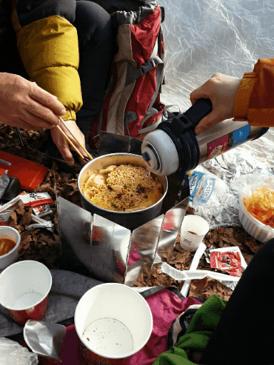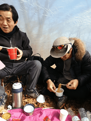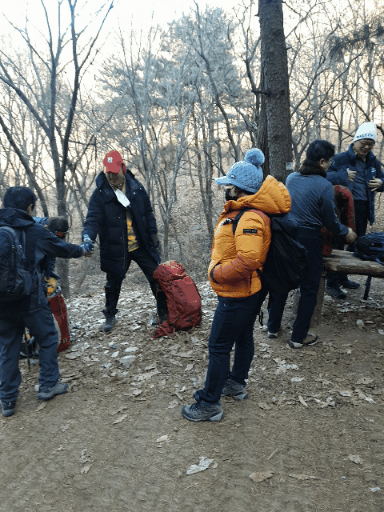 추운날씨의 산행 몸을 녹이며