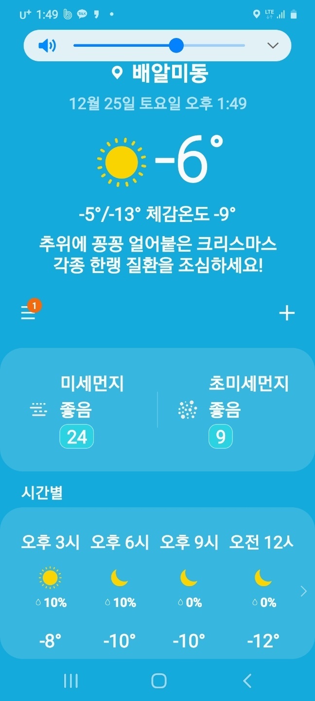 12시 20분 하남 기온은 ㅡ6이다