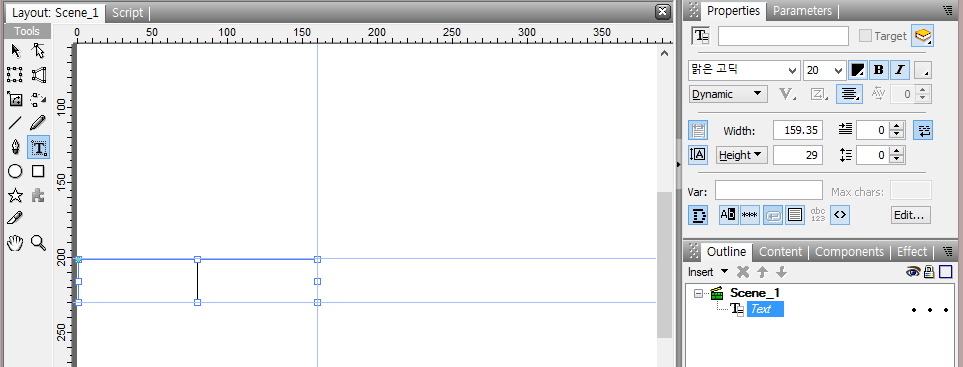 Stage에서 그 간격에 맞게 글틀을 Drag해 그립니다.