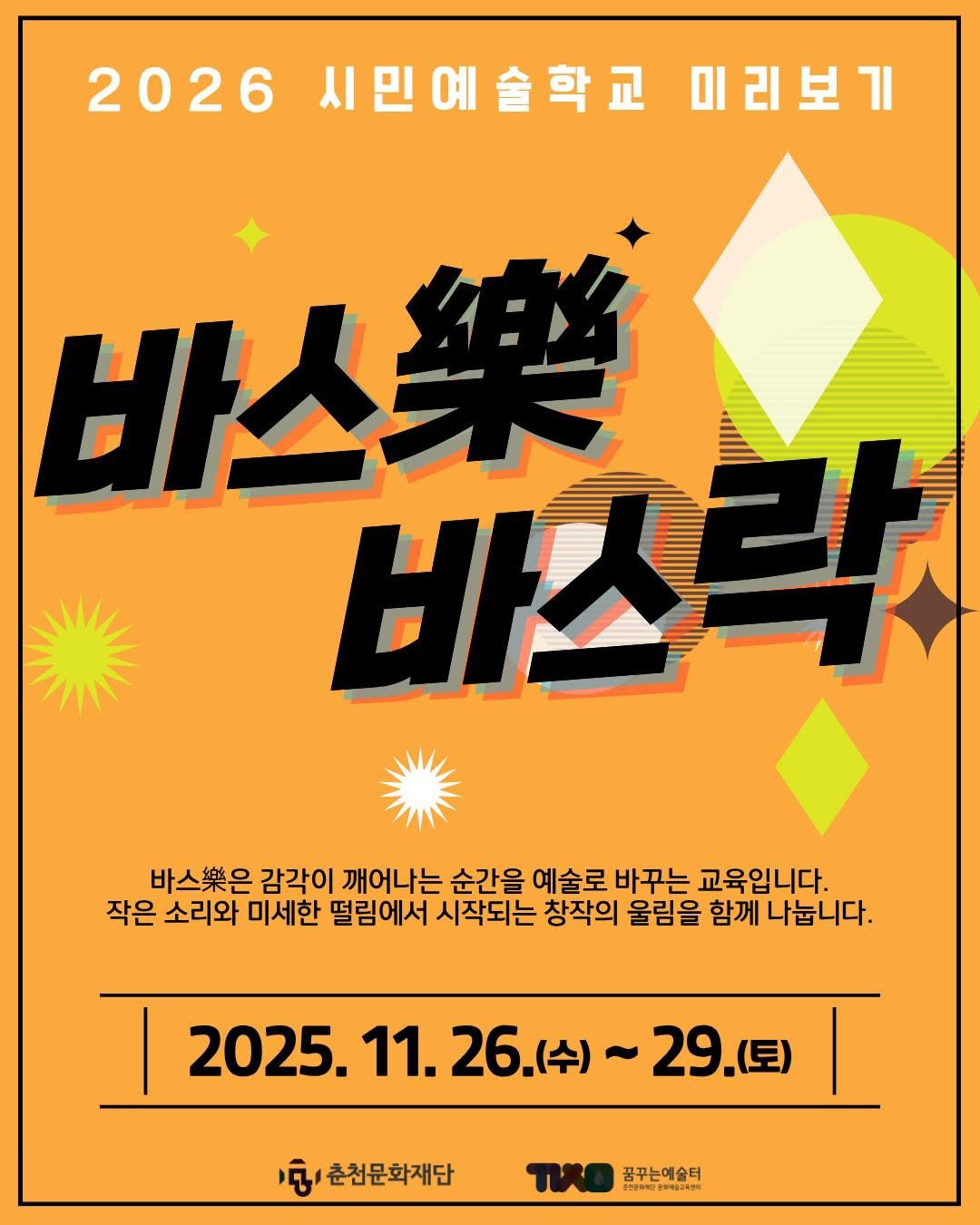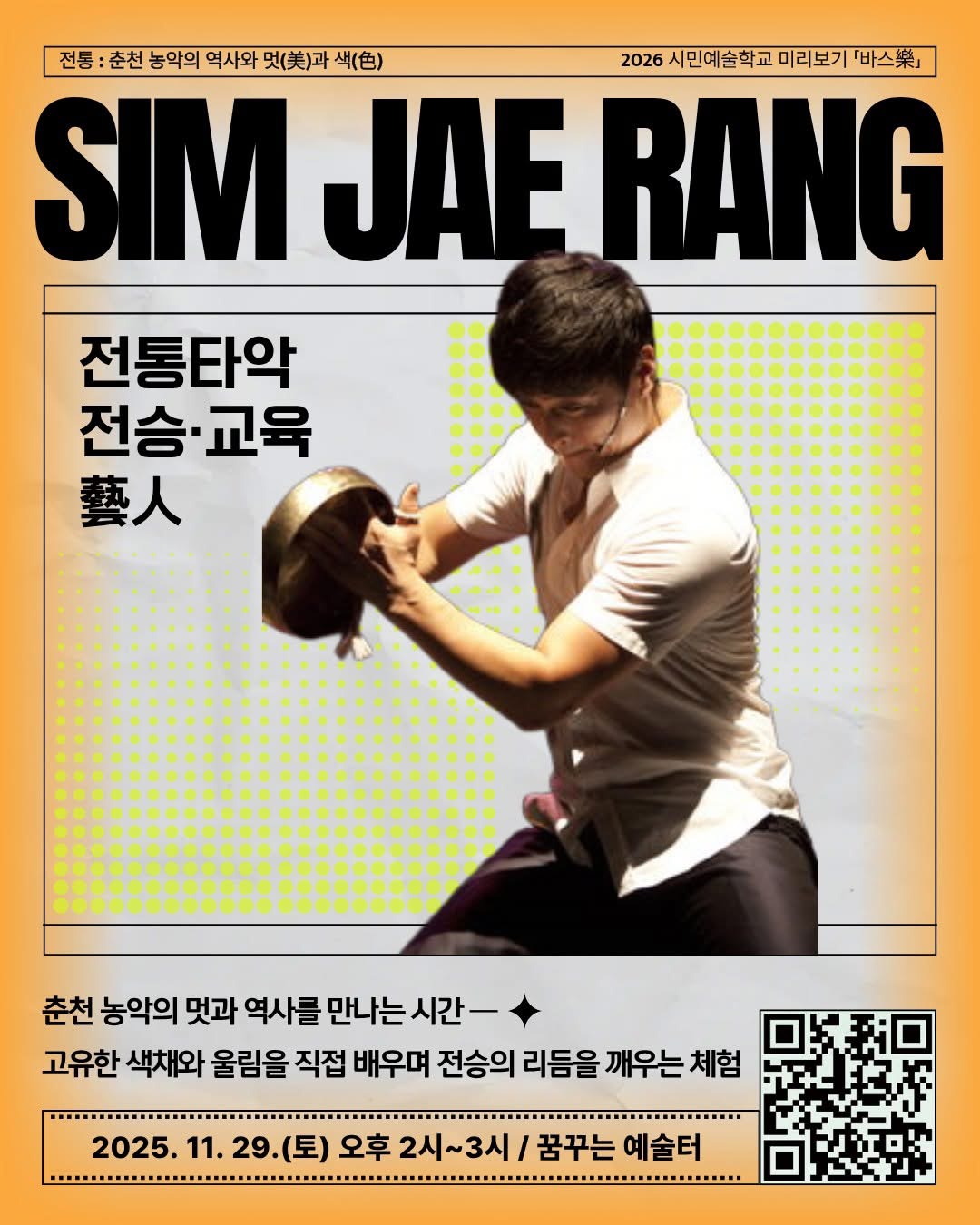 2026 시민 예술학교 미리보기! 🎉✨ 바스락 바스락, 춘천농악의 멋과 역사를 만나는 시간!