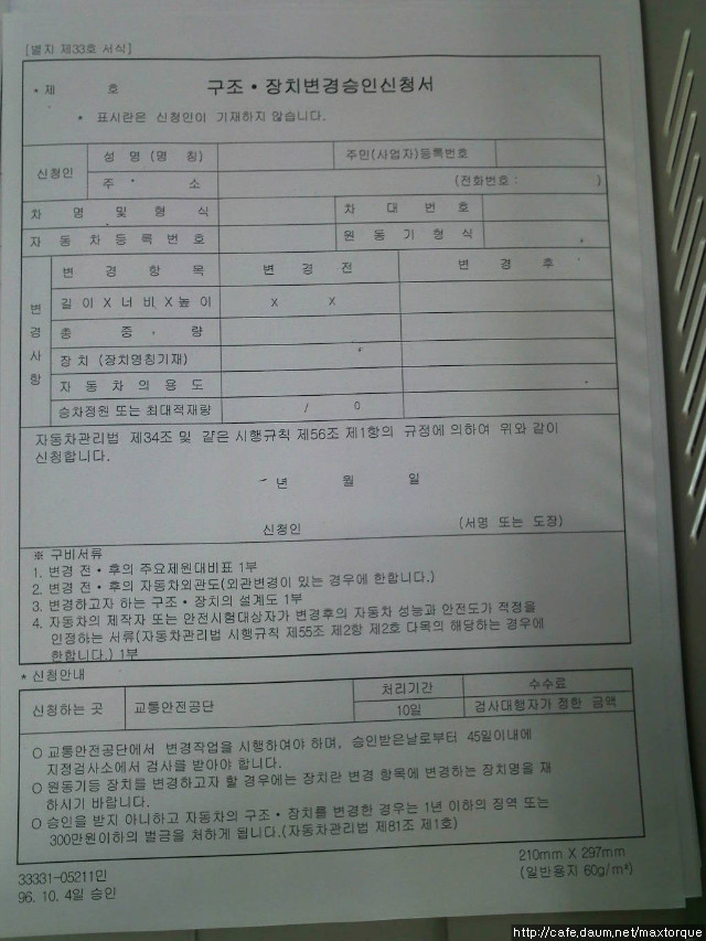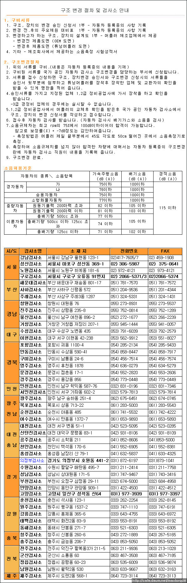 여태 구조변경 승인절차 글 올리시는 분들이 대략적인 얕은 내용을 올려서 좀 애매모호하며, 구변에 따른 여러 상황때문에 애로사항이 컷었습니다.