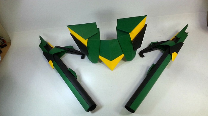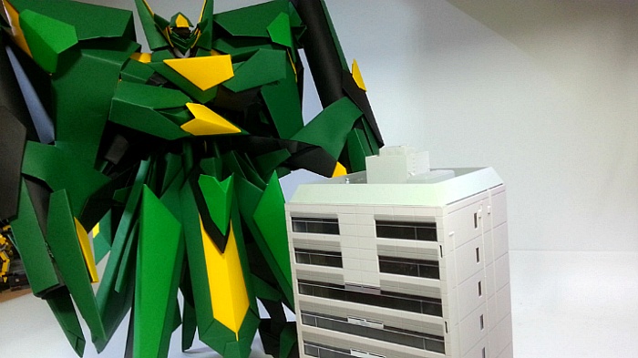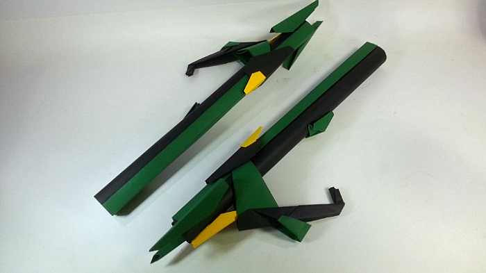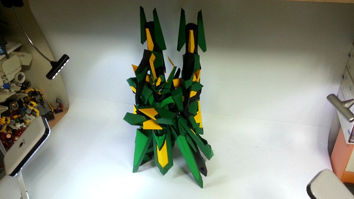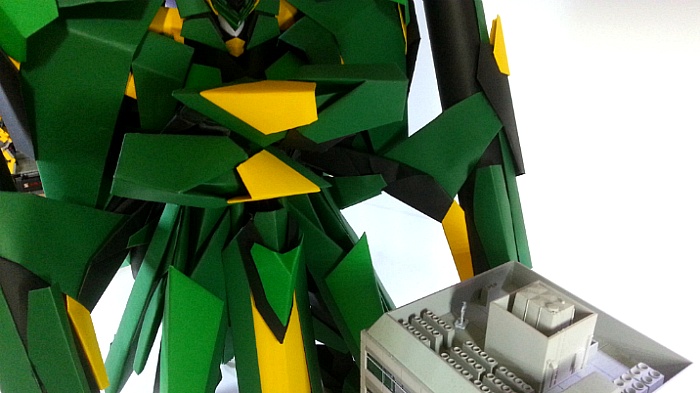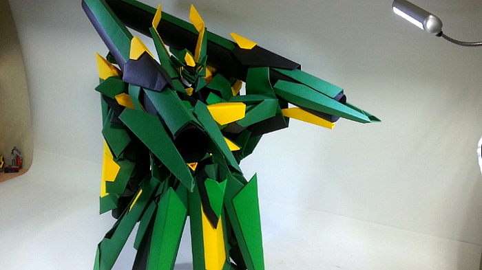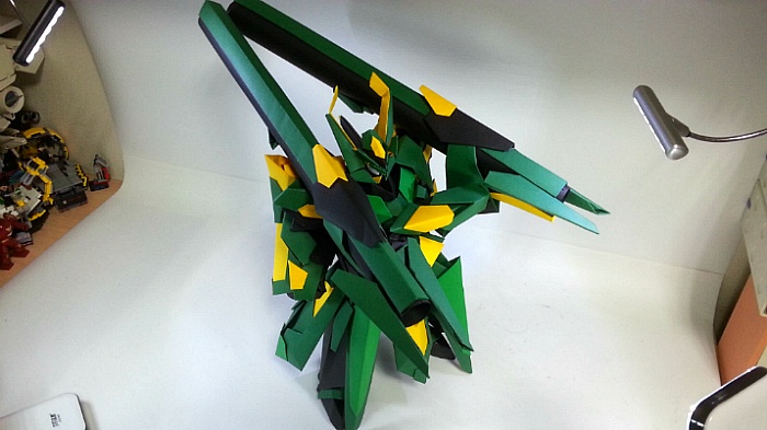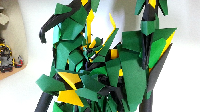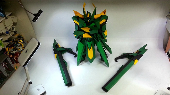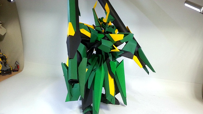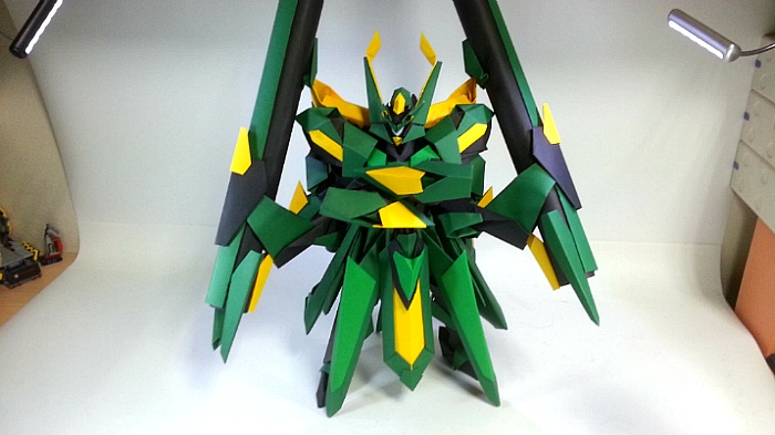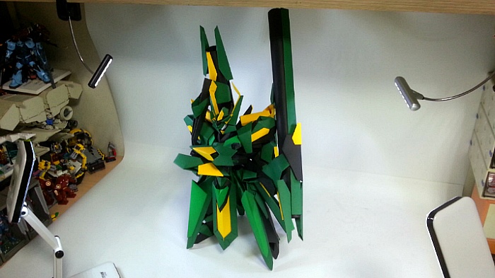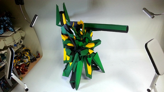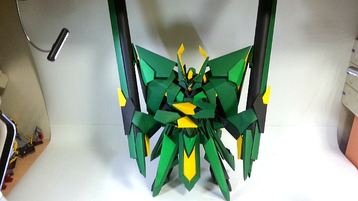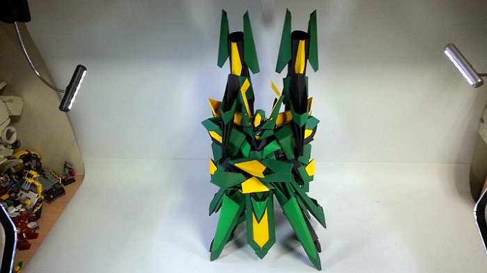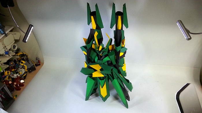 팔짱을 끼고 어깨의 포신을 세우는 녹색의 거대기신