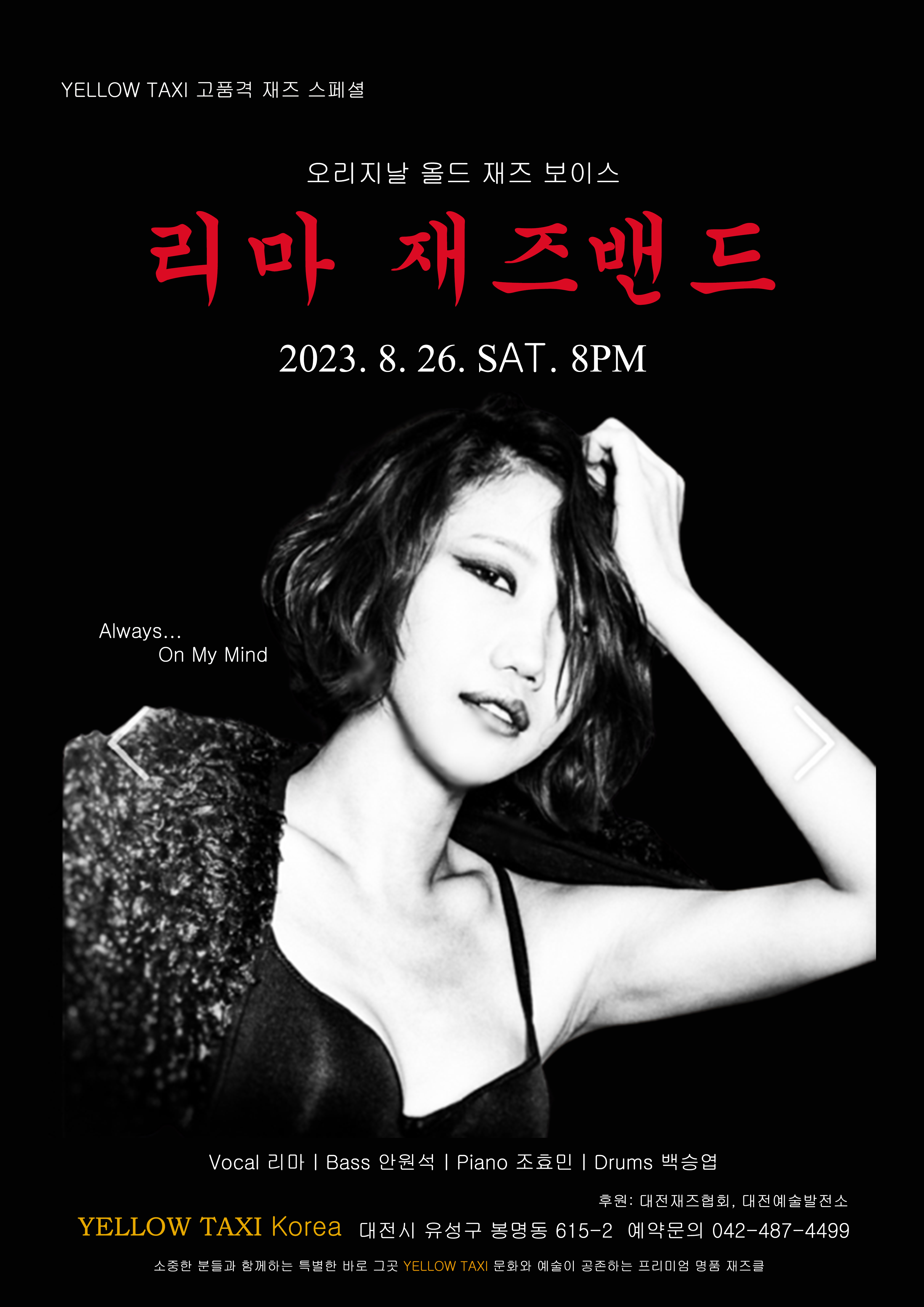 재즈 보컬리스트 리마의 독창적이고 감수성 짙은 보이스로 국내 최정상 플레이어와 함께 오리지널 올드 재즈의 정점을 선보이는 재즈밴드입니다.