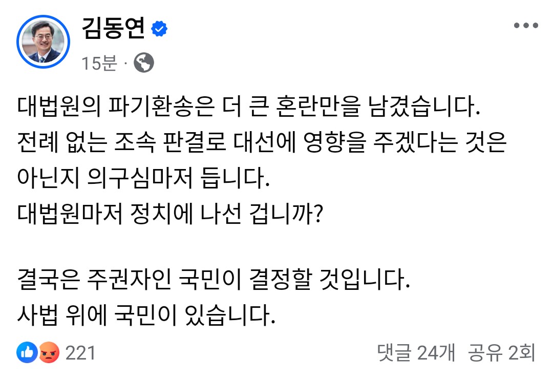 김동연 난가병 치료된 듯 작성자러바오|작성시간25.05.01|조회수1,545 목록 댓글 4 글자크기 작게가 글자크기 크게가 다음검색 현재 게시글 추가 기능 열기 북마크 공유하기 신고 센터로 신고 댓글 댓글 4 댓글쓰기 답글쓰기 댓글 리스트 작성자파랑 | 작성시간 25.05.01 경선 끝나고 빠르게 완치 ㅋㅋㅋㅋㅋ 작성자파란사과 | 작성시간 25.05.01 김동연 조차 빡칠 사안 작성자몽키.D.루피 | 작성시간 25.05.01 근데 재판때마다 SNS에는 이랬음 작성자소나기 | 작성시간 25.05.01 저래야 혹시 2등한 난가? 하죠.전 김동연 안믿습니다. 댓글 전체보기