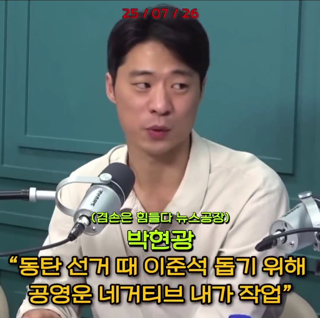 박현광 기자가 이준석 당선 시킬려고 작업했었다고 하네요 작성자Yoonnnn|작성시간25.07.30|조회수2,465 목록 댓글 16 글자크기 작게가 글자크기 크게가 문래동 나와서 공영운 네거티브 본인이 작업한거라고 언급하네요..이거 정언유착 아닌가요?뭐가 자랑이라고 방송에서 떠드는 건지..대통령실이 아니라 특검에 가야 될거 같은데요? 다음검색 현재 게시글 추가 기능 열기 북마크 공유하기 신고 센터로 신고 댓글 댓글 16 댓글쓰기 답글쓰기 댓글 리스트 작성자Hanroro | 작성시간 25.07.30 ?? 저걸 뭘 자랑이라고 떠들고 앉아있는거지 기자가 의도적으로 악성 기사 기획해서 써낸거면 처벌받을 일 아닌가 작성자포메라니안 | 작성시간 25.07.30 신인규랑 비슷한결로 보시면될듯 작성자마이너스템포 | 작성시간 25.07.30 이걸 대놓고 얘기한다고? 문제의식자체가 없나? 답댓글 작성자폴포그바 | 작성시간 25.07.30 저도 그게젤 노이해 ㅋㅋㅋ 넘시러요 작성자파이리꼬리곰탕 | 작성시간 25.07.30 와 개실망이네요 ;; 댓글 전체보기