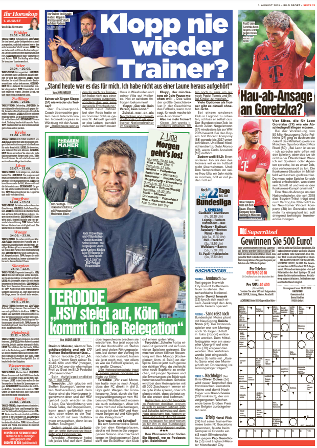 빌트는 알고 있다. 클롭은 축구 감독직 외에 다른 일을 하고 싶지 않다. 그리고 1년 동안 아무것도 하지 않겠다는 아내와의 약속을 반드시 지킬 것이다.