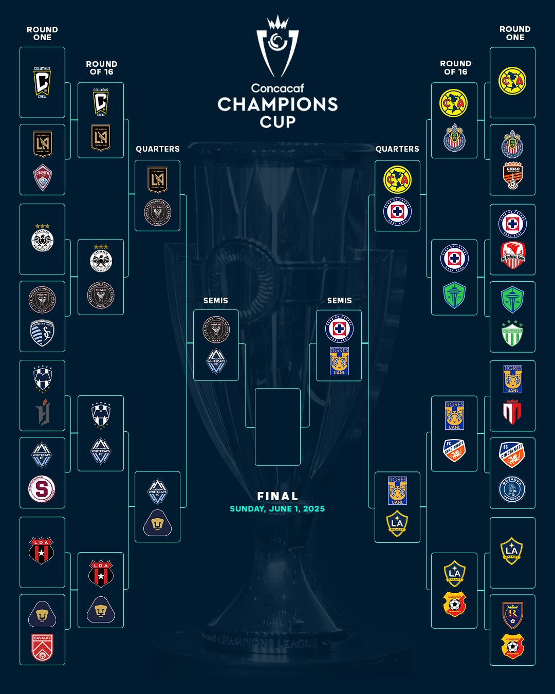 [오피셜]2025 CONCACAF 챔피언스 컵 준결승 대진 확정 작성자리오넬 메갓지민|작성시간25.04.11|조회수316 목록 댓글 1 글자크기 작게가 글자크기 크게가 인터 마이애미 v 밴쿠버 화이트캡스크루스 아술 v 티그레스 UANLhttps://x.com/MLS/status/1910330677385650476?t=2yn0qoPTAXljQ5STKRyROw&s=19 다음검색 현재 게시글 추가 기능 열기 북마크 공유하기 신고 센터로 신고 댓글 댓글 1 댓글쓰기 답글쓰기 댓글 리스트 작성자바이언2 | 작성시간 25.04.11 ㄷㄷㄷ 댓글 전체보기