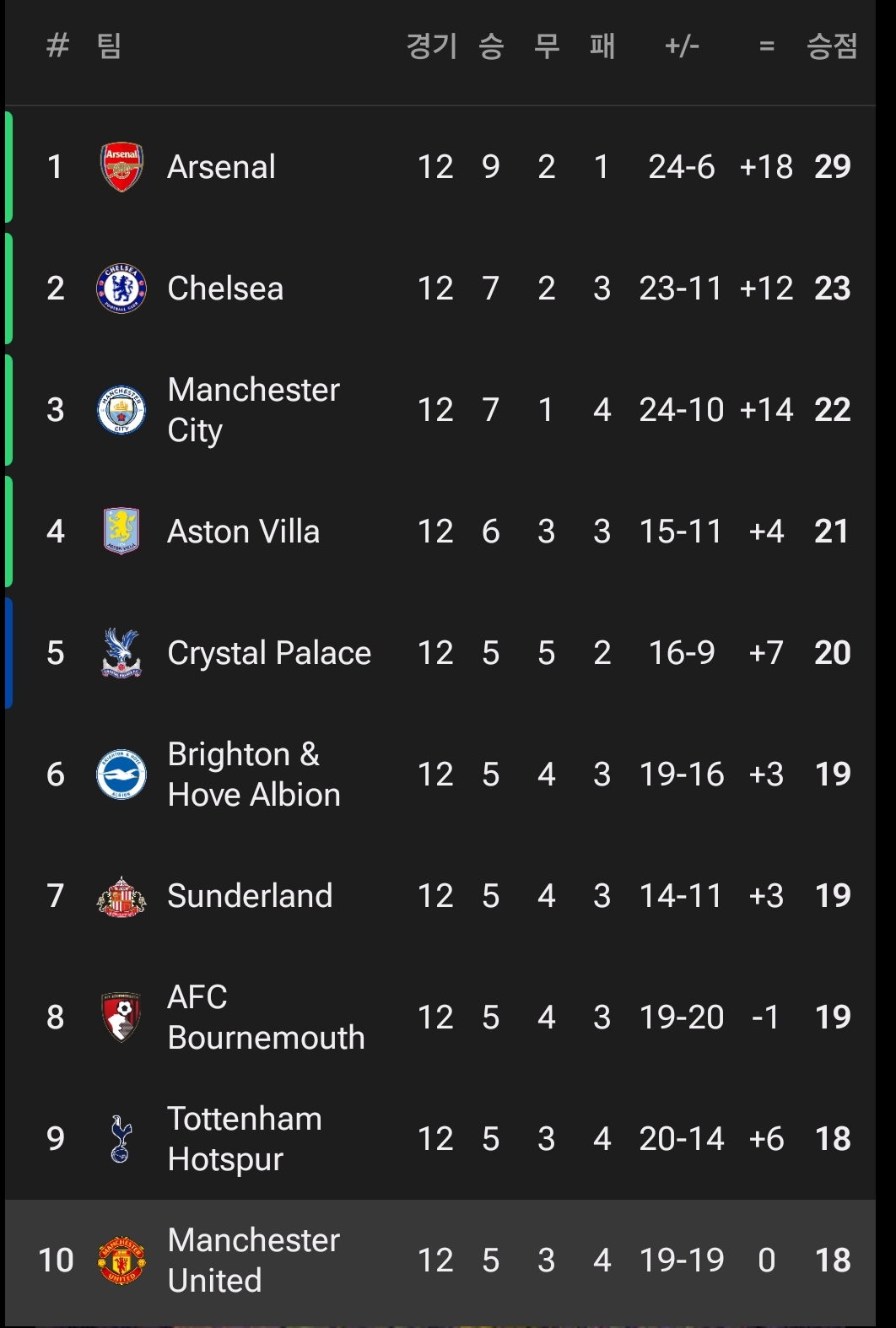 PL 12라운드 순위 작성자담시즌엔 우승하나|작성시간25.11.25|조회수1,942 목록 댓글 4 글자크기 작게가 글자크기 크게가 2등하던 선더랜드 언제 저기까지 내려갔데진짜 대혼돈의 PL 다음검색 현재 게시글 추가 기능 열기 북마크 공유하기 신고 센터로 신고 댓글 댓글 4 댓글쓰기 답글쓰기 댓글 리스트 작성자CAESAR | 작성시간 25.11.25 진짜 촘촘하네요 작성자H_Crespo | 작성시간 25.11.25 에효. 그냥 아스날 우승 기원해야겠다. 작성자베니테즈 | 작성시간 25.11.25 아스날 적기임 작성자Noel Gallagher | 작성시간 25.11.25 우승은 힘들겠고.. 지금처럼 챔스만 유지하자 댓글 전체보기