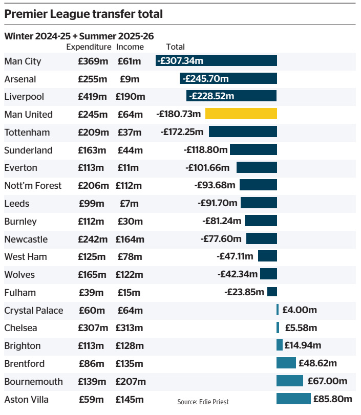 프리미어리그 최근 두 번의 이적시장 넷스펜딩 작성자갈라티코2기|작성시간26.01.06|조회수1,366 목록 댓글 5 글자크기 작게가 글자크기 크게가 다음검색 현재 게시글 추가 기능 열기 북마크 공유하기 신고 센터로 신고 댓글 댓글 5 댓글쓰기 답글쓰기 댓글 리스트 작성자바이언2 | 작성시간 26.01.06 작성자알레부천 | 작성시간 26.01.06 첼시가 짱이다 진자 작성자HonjoSuzu | 작성시간 26.01.06 첼시는 벌었네 ㄷㄷ 작성자뱅상곰팡이 | 작성시간 26.01.06 에메리 대단 ㄷㄷ 작성자DaFunk | 작성시간 26.01.06 첼시는 그전에 어마어마하게 산 선수들 판것도 있으니 댓글 전체보기