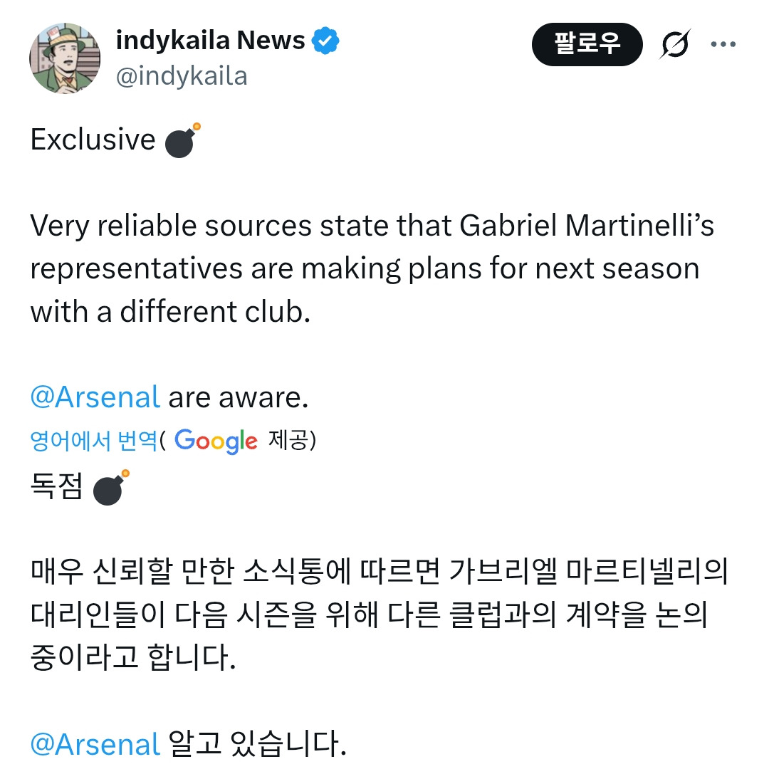 樂soccer [SNS][인디카일라 독점] 가브리엘 마르티넬리, 다음 시즌은 다른 클럽과 논의 중 작성시간26.01.10|조회수1,282 목록 댓글 6 글자크기 작게가 글자크기 크게가 https://x.com/indykaila/status/2009925666805076106?s=20 다음검색 현재 게시글 추가 기능 열기 북마크 공유하기 신고 센터로 신고 댓글 6 댓글 리스트 작성시간 26.01.10 어느정도 금액 조율이 된다면 잡는 편이 낫긴 함 작성시간 26.01.10 그래 가라 작성시간 26.01.10 지금 팔아야 잘판다 소리 듣는다 작성시간 26.01.10 인디카일라 공신력 최고죠?? 온스테인 급으로 보이네 작성시간 26.01.10 이제 얘는 팔수있을때 파는게 맞음... 카페 방문해 더 많은 댓글 만나기!