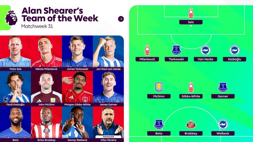 DF : 페르디 카디오글루(브라이튼 앤 호브 알비온), 얀 폴 반헤케(브라이튼 앤 호브 알비온), 제임스 타코우스키(에버튼), 니콜라 밀렌코비치(노팅엄 포레스트)