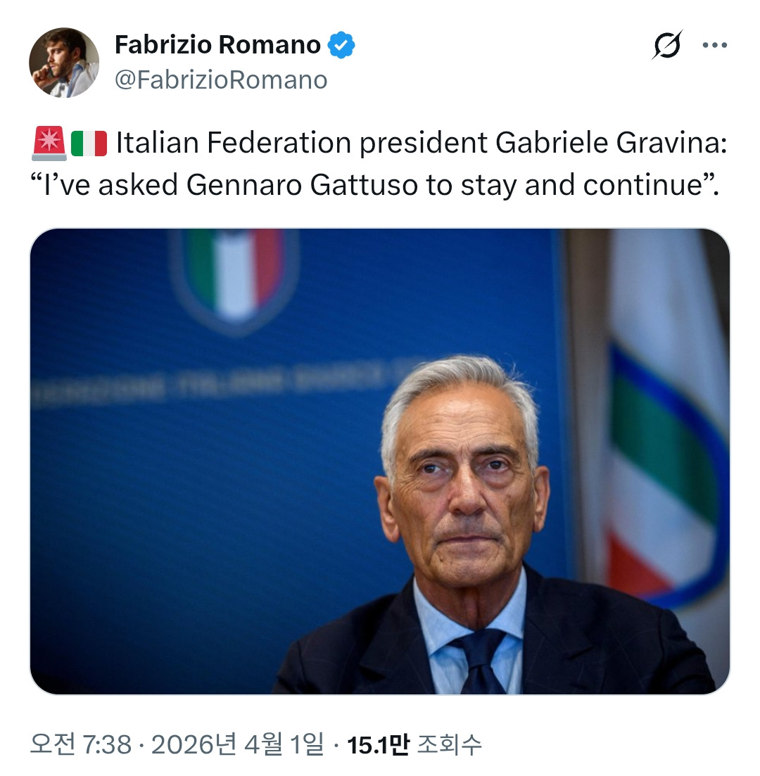 작성자romario 작성시간 26.04.01 이탈리아는 왜 안첼로티 선임을 안하지 자국팀인데 심자기나