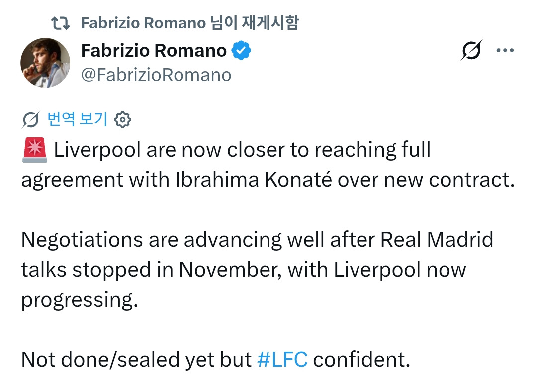 아직 완료/확정되지 않았지만 #LFC는 자신감을 보인다.