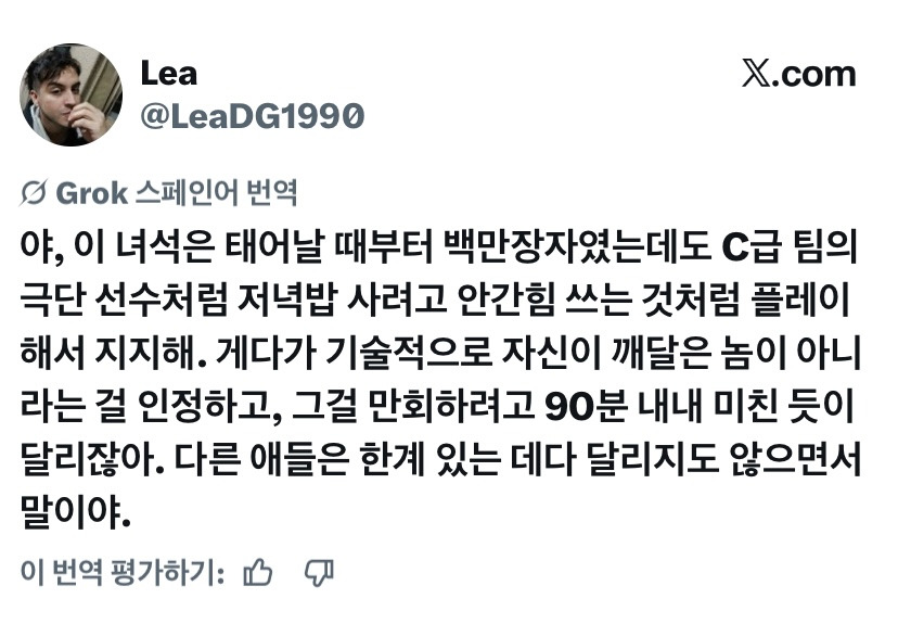 작성자모과차 작성시간 26.04.10 ㄹㅇ 눈에 띄게 열심히 뛰더라 ㅋㅋ