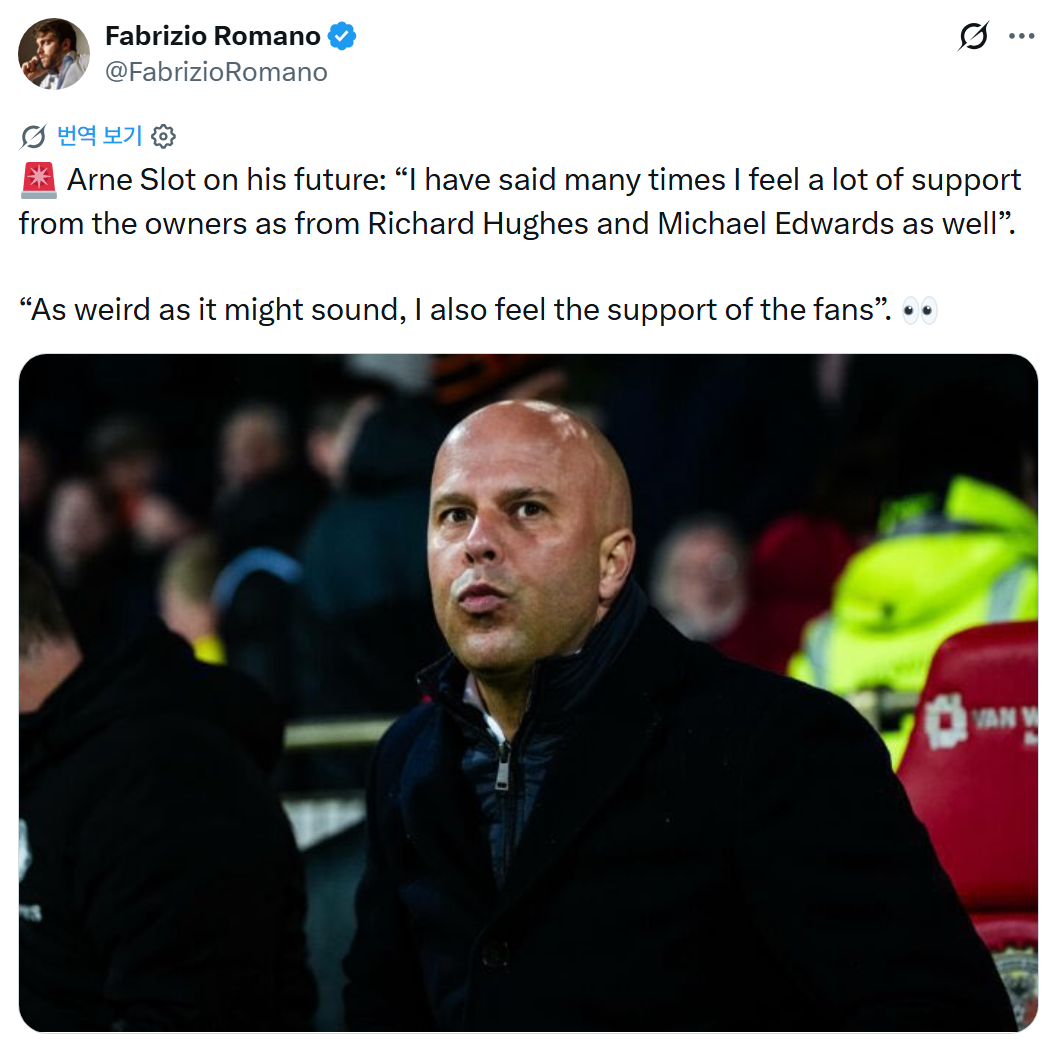 “저는 여러 번 말했지만, 리처드 휴즈와 마이클 에드워즈뿐만 아니라 구단주들로부터도 많은 지지를 받고 있다고 느낍니다”