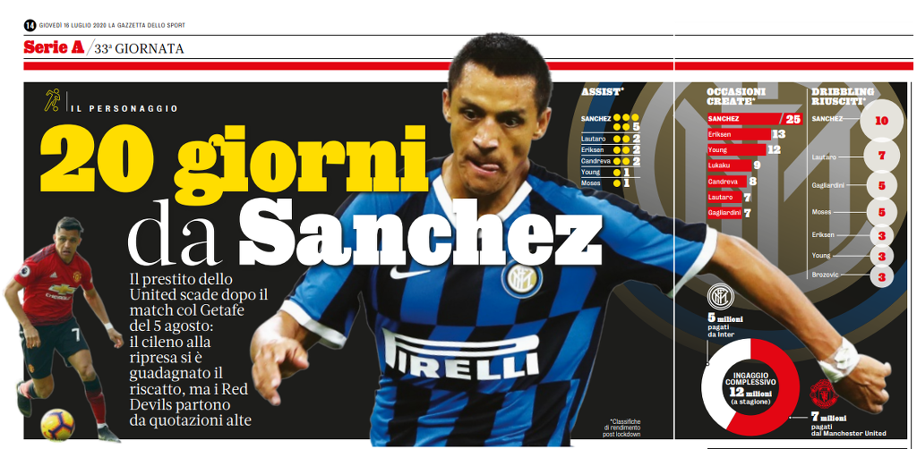 맨유는 산초 영입을 위해 돈이 필요하며 무엇보다 산체스 연봉을 부담할 여유가 없다. 맨유가 20m 유로가 넘는 높은 가격에 협상을 시작하더라도 영구 이적에 관한 합의가 타결될 가능성은 높다. 인테르는 경제적인 노력이 필요하다.