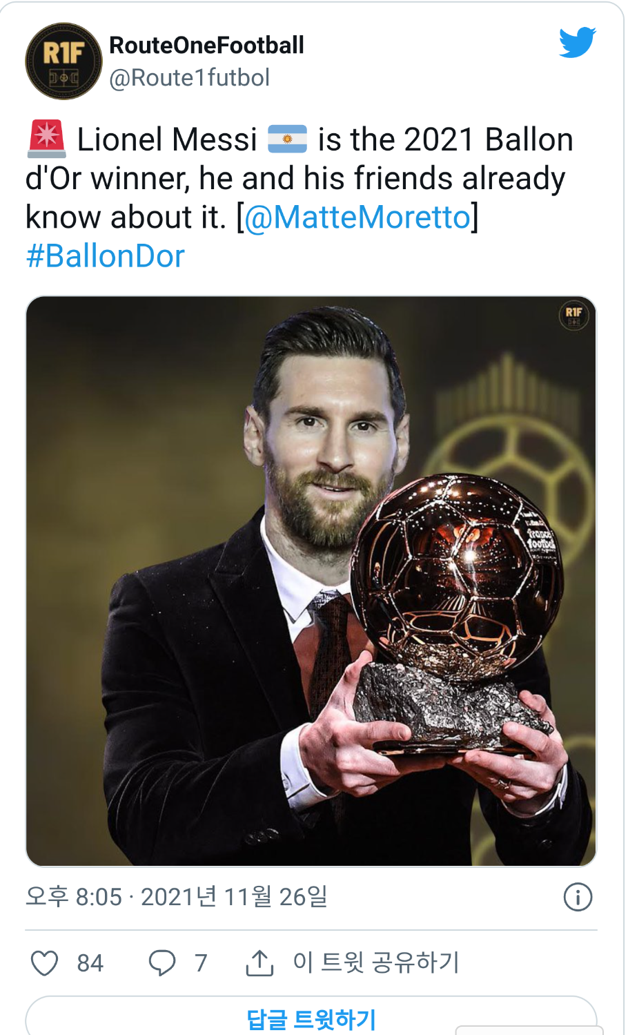 [마테오 모레토] 메시는 본인이 발롱도르 수상자인걸 알고 있어 작성자트로트를싫어하는사람|작성시간21.11.26|조회수911 목록 댓글 5 글자크기 작게가 글자크기 크게가 https://mobile.twitter.com/Route1futbol/status/1464188542888787968?ref_src=twsrc%5Etfw%7Ctwcamp%5Etweetembed%7Ctwterm%5E1464188542888787968%7Ctwgr%5E%7Ctwcon%5Es1_&ref_url=https%3A%2F%2Fwww.fmkorea.com%2F4115623162 "그와 그의 친구들은 이미 알고있다" 다음검색 현재 게시글 추가 기능 열기 북마크 공유하기 신고 센터로 신고 댓글 댓글 5 댓글쓰기 답글쓰기 댓글 리스트 작성자집에가고싶어 | 작성시간 21.11.26 작성자제이든Sancho | 작성시간 21.11.26 작성자아메리카노 | 작성시간 21.11.26 ㄷㄷ 작성자비에이라 | 작성시간 21.11.26 작성자제라드짱팬 | 작성시간 21.11.26 축 댓글 전체보기