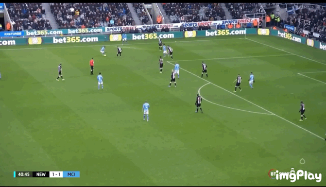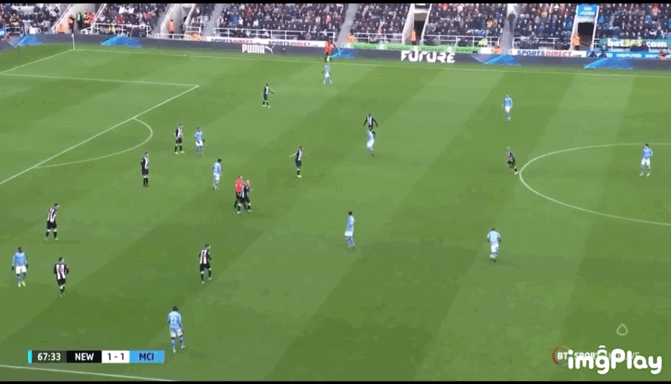 *데 브라이너가 오른쪽 전개까지도 도움을 주는 장면이다.