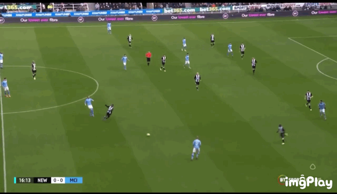 물론 정통적인 윙어는 될 수 없는 자원이기에 쓸수 았는 방안으로는 맨시티의 왼쪽 사이드 공략 처럼 숫자 싸움이 가능하도록 알바 아르투르 메시 부스케츠와 함께 왼쪽 사이드는 숫자 싸움을 가져가면서 왼쪽 하프스페이스를 공략하는 방안이 가장 효율 적일 것입니다. 이때 부스케츠가 올라가버리면 결국 빠른 방향전환은 힘들지 않냐고 했을때 해답은 워커의 움직임입니다 첫번째 그리고 두번째 짤을 보시면 아시겠지만 워커가 빌드업의 축으로서도 활동하지만 높은 위치에서 빠른 전개 및 빌드업의 축으로서도 쓰이는 모습입니다. 특히 로드리와 워커가 더블 볼란치를 이루면서 로드리는 왼쪽으로 이동하여 숫자싸움을 도와주고 워커는 피보테 처럼 움직여 빠른 볼 순환에 기여하는 모습입니다.