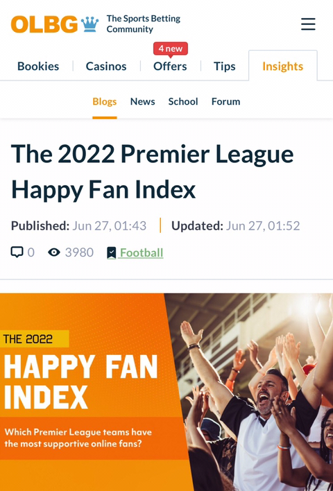 🚨 NEW: New research has named Liverpool fans as the happiest in the Premier League. #lfc [olbg]