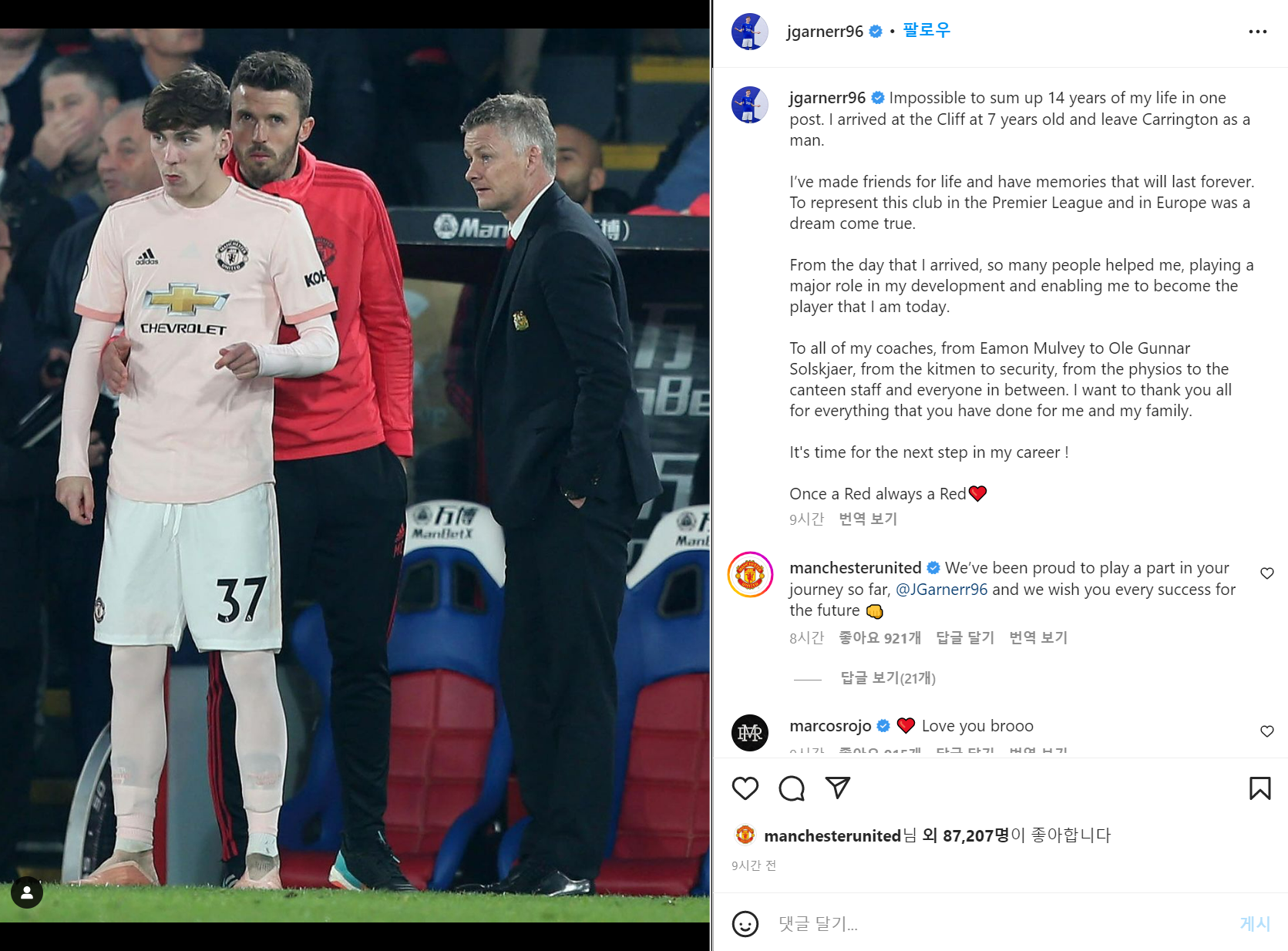[출처] [IG] 제임스 가너 : "맨체스터 유나이티드를 떠나며"|작성자 carras16